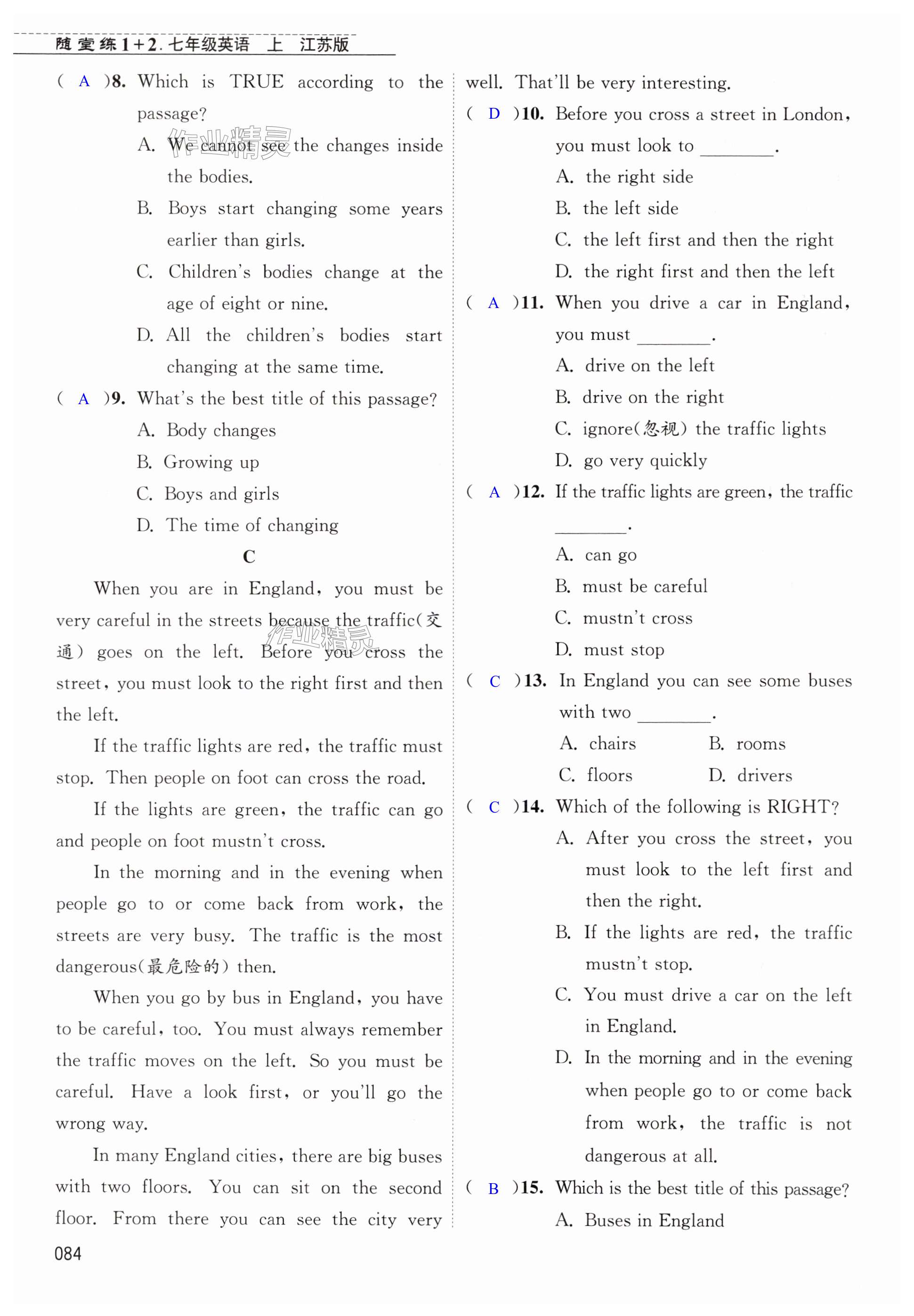 注:目前有些书本章节名称可能整理的还不是很完善,但都是按照顺序排列的,请同学们按照顺序仔细查找。练习册 2024年随堂练1加2七年级英语上册译林版 答案主要是用来给同学们做完题方便对答案用的,请勿直接抄袭。
