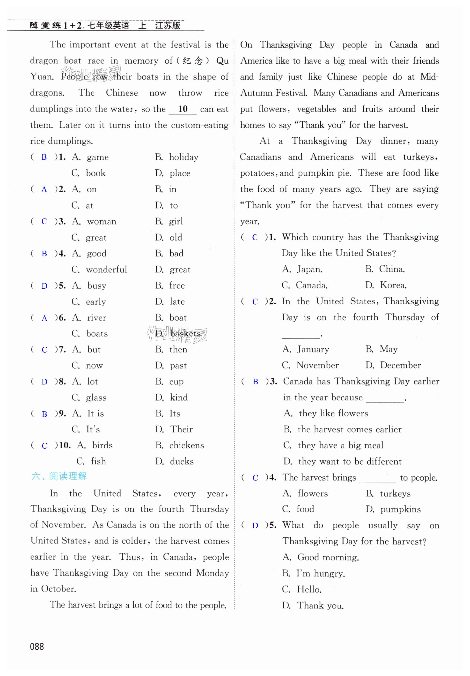 注:目前有些书本章节名称可能整理的还不是很完善,但都是按照顺序排列的,请同学们按照顺序仔细查找。练习册 2024年随堂练1加2七年级英语上册译林版 答案主要是用来给同学们做完题方便对答案用的,请勿直接抄袭。
