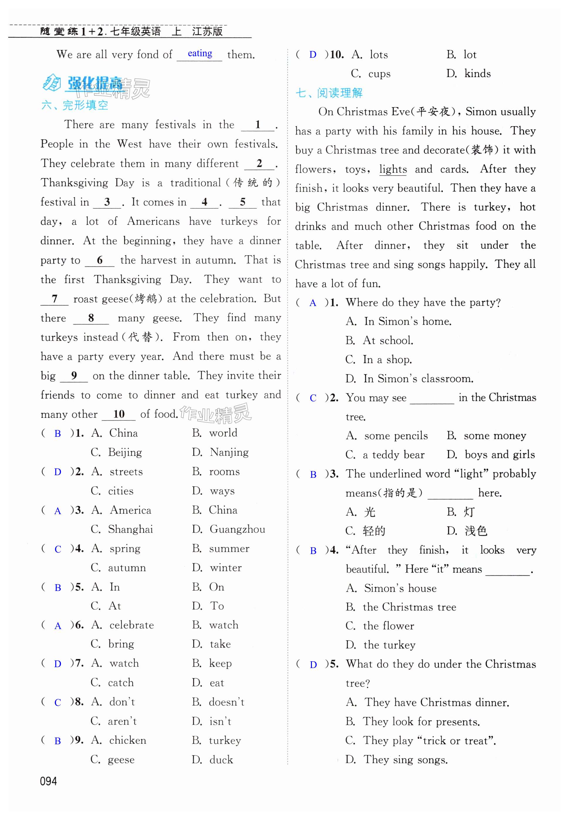 注:目前有些书本章节名称可能整理的还不是很完善,但都是按照顺序排列的,请同学们按照顺序仔细查找。练习册 2024年随堂练1加2七年级英语上册译林版 答案主要是用来给同学们做完题方便对答案用的,请勿直接抄袭。