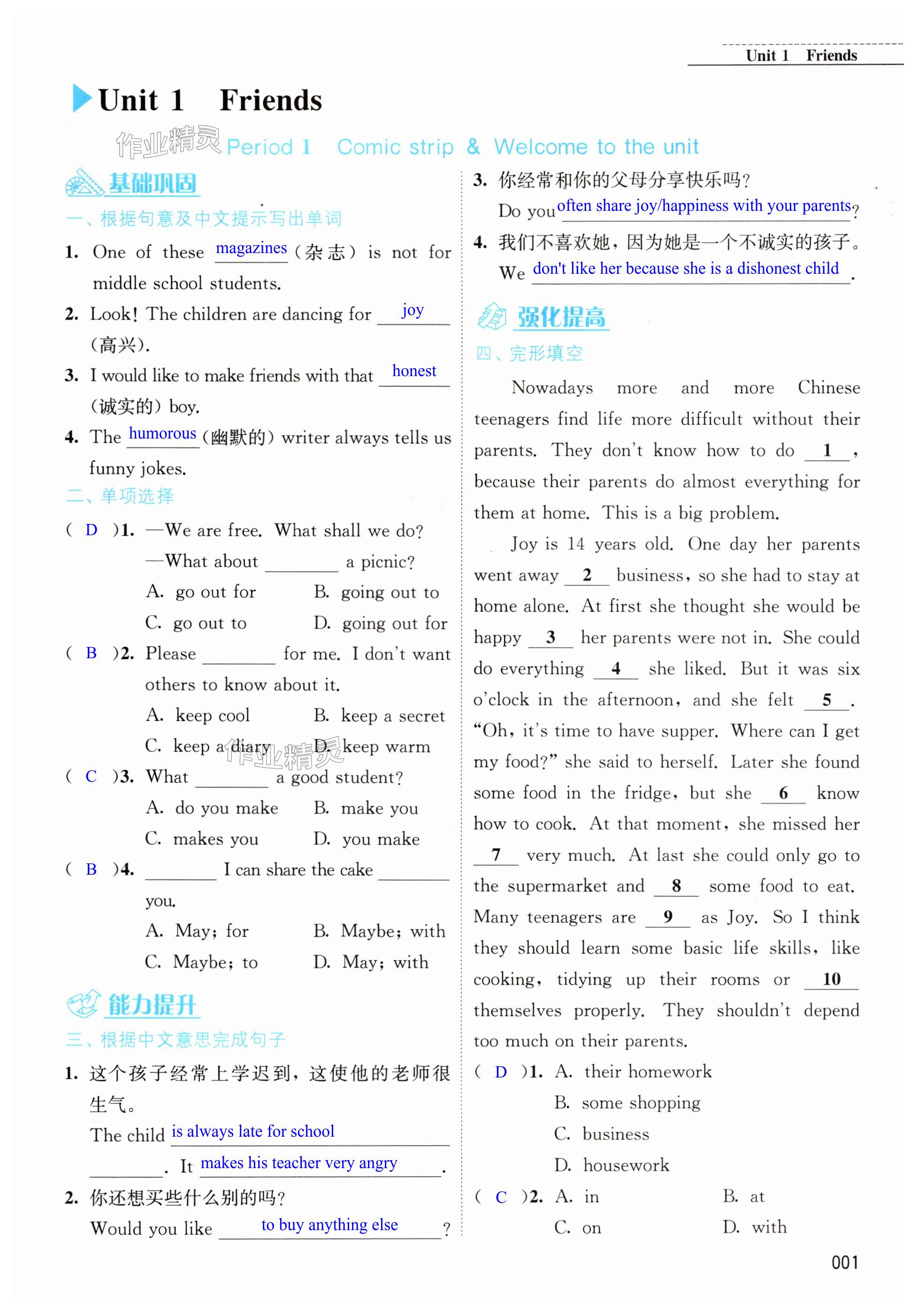 注:目前有些书本章节名称可能整理的还不是很完善,但都是按照顺序排列的,请同学们按照顺序仔细查找。练习册2023年随堂练1加2八年级英语上册译林版答案主要是用来给同学们做完题方便对答案用的,请勿直接抄袭。