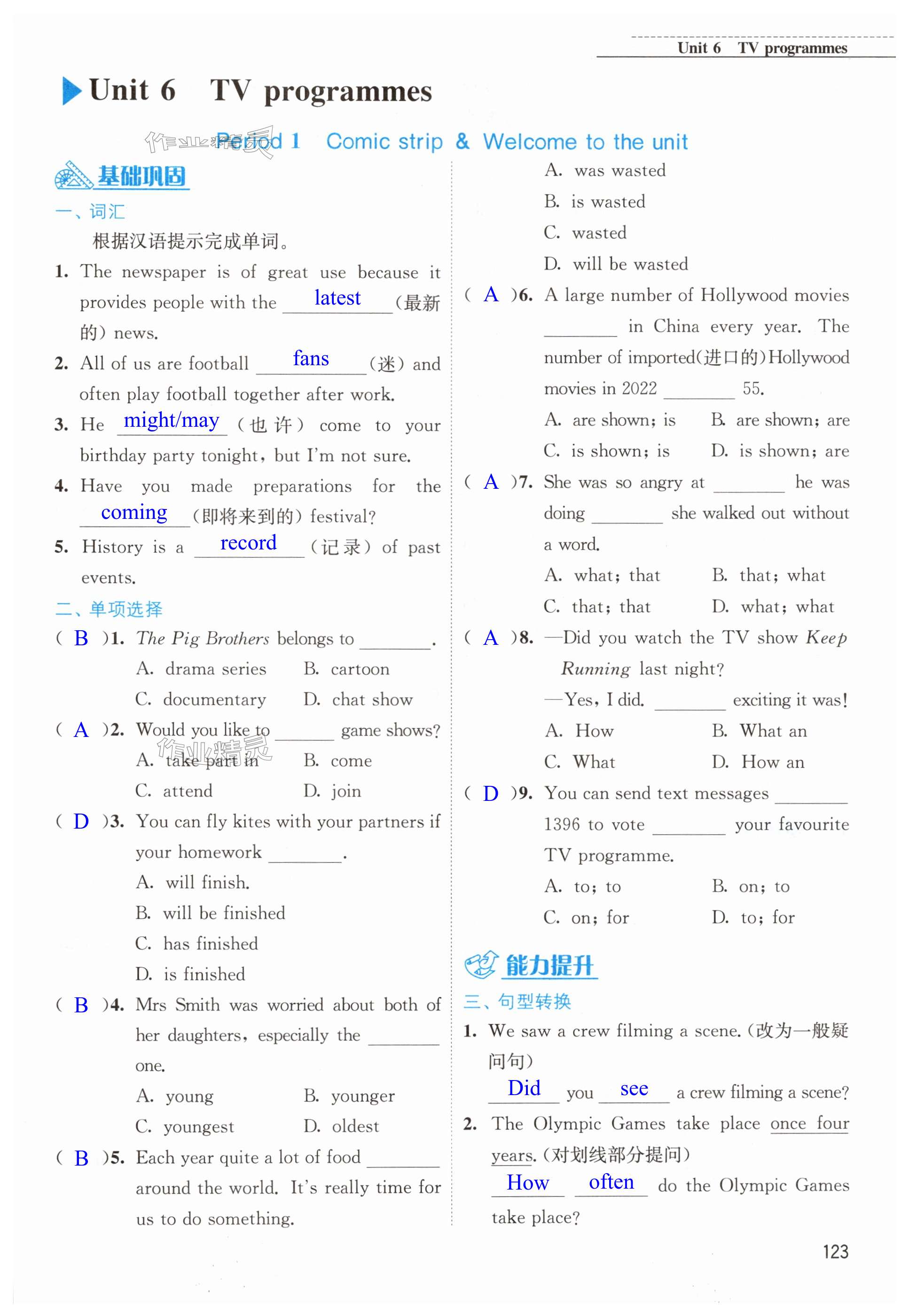 注:目前有些书本章节名称可能整理的还不是很完善,但都是按照顺序排列的,请同学们按照顺序仔细查找。练习册 2023年随堂练1加2九年级英语上册译林版 答案主要是用来给同学们做完题方便对答案用的,请勿直接抄袭。