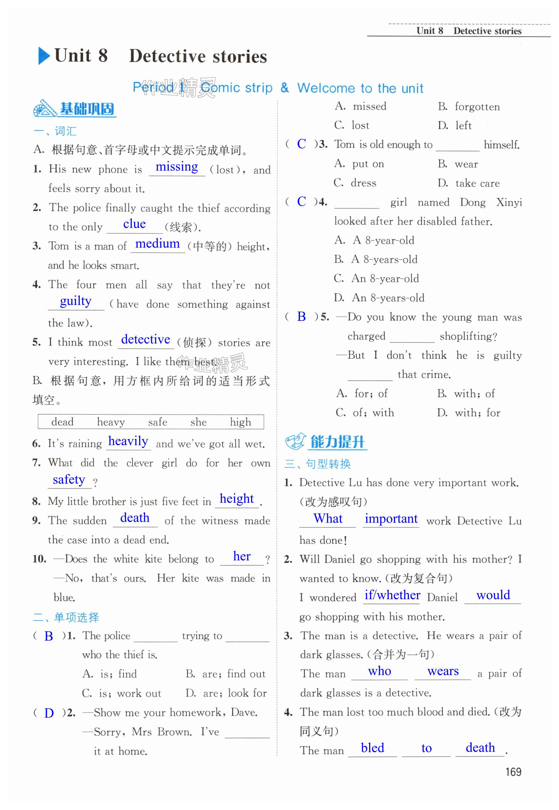 注:目前有些书本章节名称可能整理的还不是很完善,但都是按照顺序排列的,请同学们按照顺序仔细查找。练习册 2023年随堂练1加2九年级英语上册译林版 答案主要是用来给同学们做完题方便对答案用的,请勿直接抄袭。