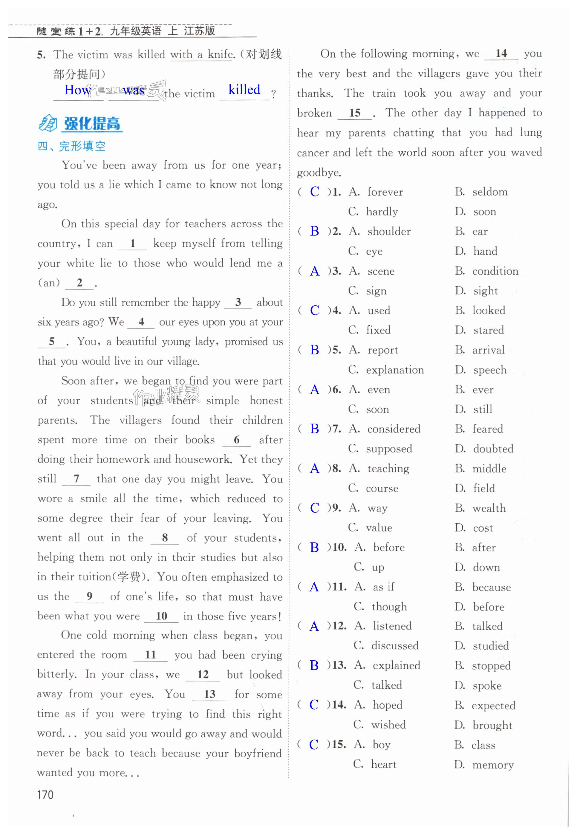 注:目前有些书本章节名称可能整理的还不是很完善,但都是按照顺序排列的,请同学们按照顺序仔细查找。练习册 2023年随堂练1加2九年级英语上册译林版 答案主要是用来给同学们做完题方便对答案用的,请勿直接抄袭。