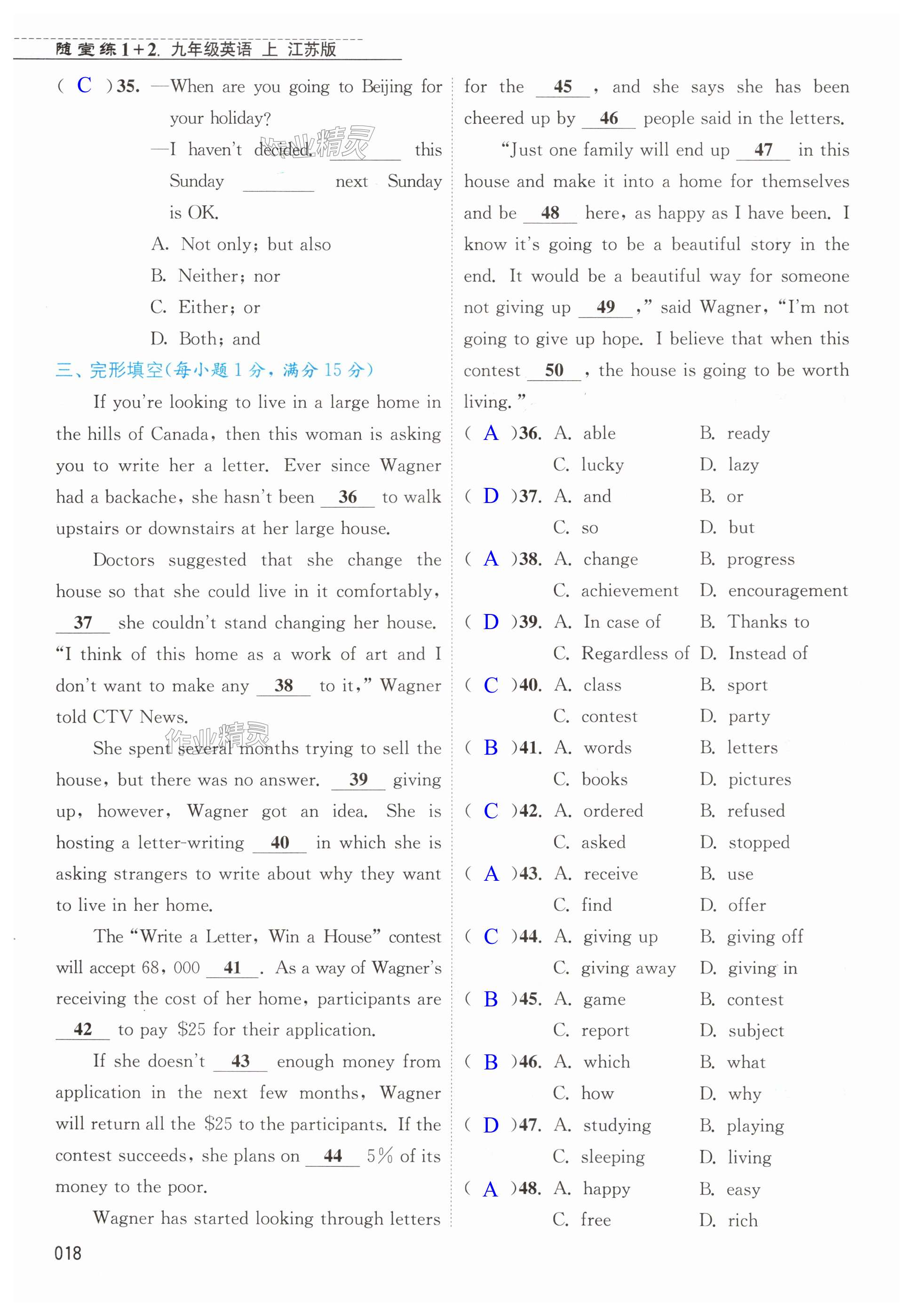 注:目前有些书本章节名称可能整理的还不是很完善,但都是按照顺序排列的,请同学们按照顺序仔细查找。练习册 2023年随堂练1加2九年级英语上册译林版 答案主要是用来给同学们做完题方便对答案用的,请勿直接抄袭。