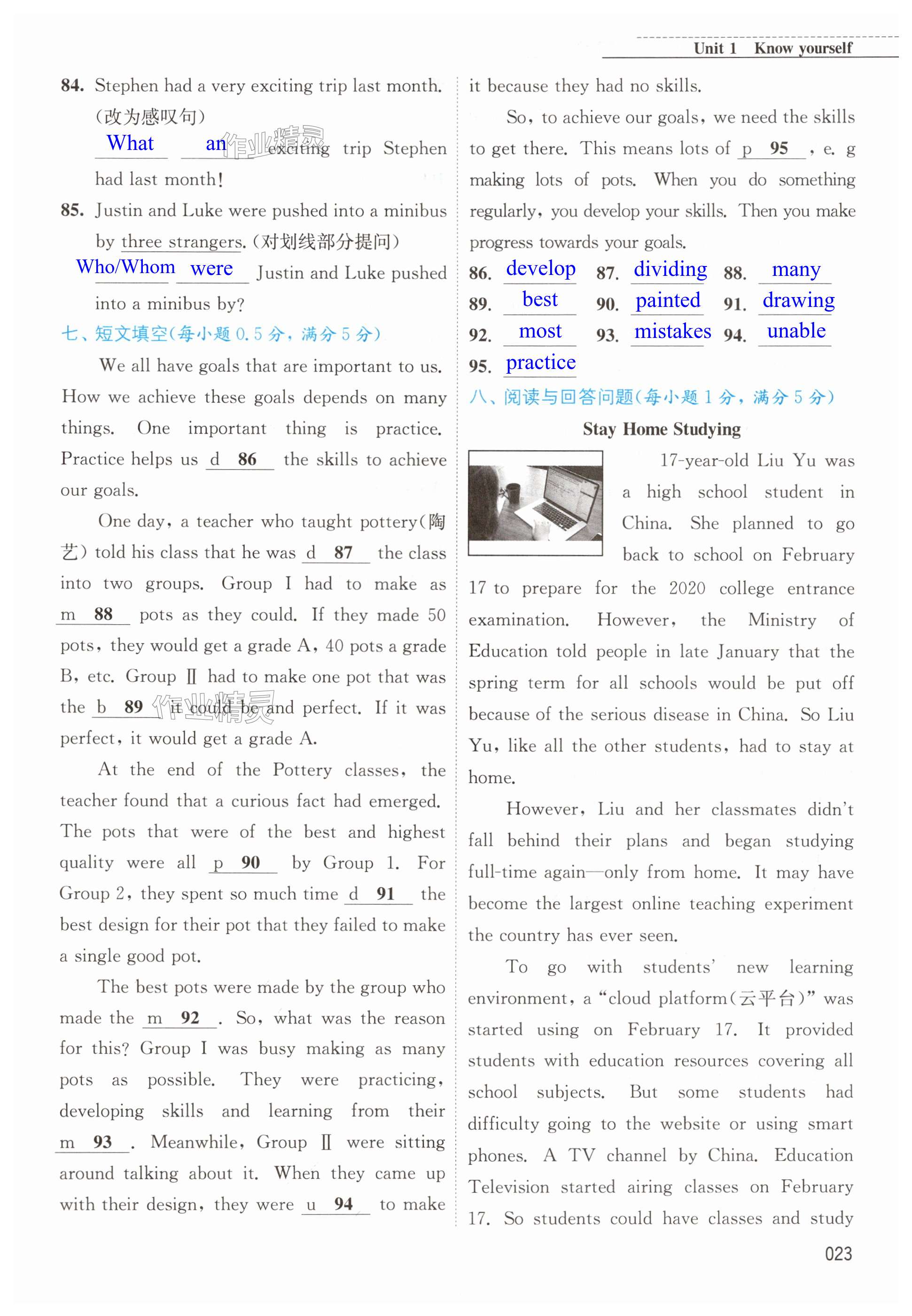 注:目前有些书本章节名称可能整理的还不是很完善,但都是按照顺序排列的,请同学们按照顺序仔细查找。练习册 2023年随堂练1加2九年级英语上册译林版 答案主要是用来给同学们做完题方便对答案用的,请勿直接抄袭。