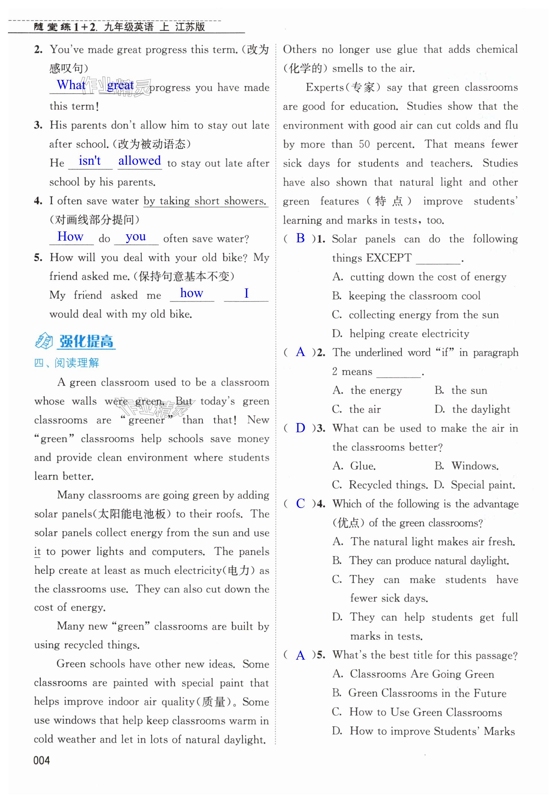 注:目前有些书本章节名称可能整理的还不是很完善,但都是按照顺序排列的,请同学们按照顺序仔细查找。练习册 2023年随堂练1加2九年级英语上册译林版 答案主要是用来给同学们做完题方便对答案用的,请勿直接抄袭。