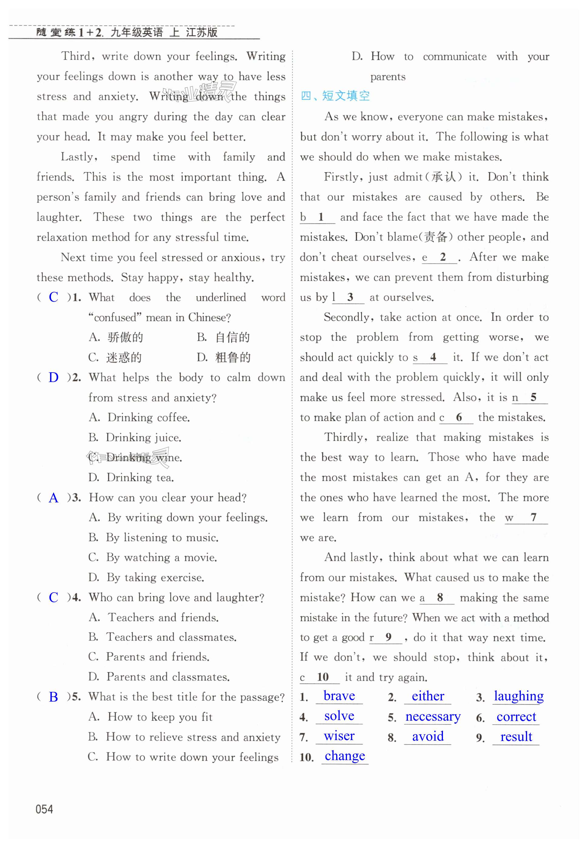 注:目前有些书本章节名称可能整理的还不是很完善,但都是按照顺序排列的,请同学们按照顺序仔细查找。练习册 2023年随堂练1加2九年级英语上册译林版 答案主要是用来给同学们做完题方便对答案用的,请勿直接抄袭。