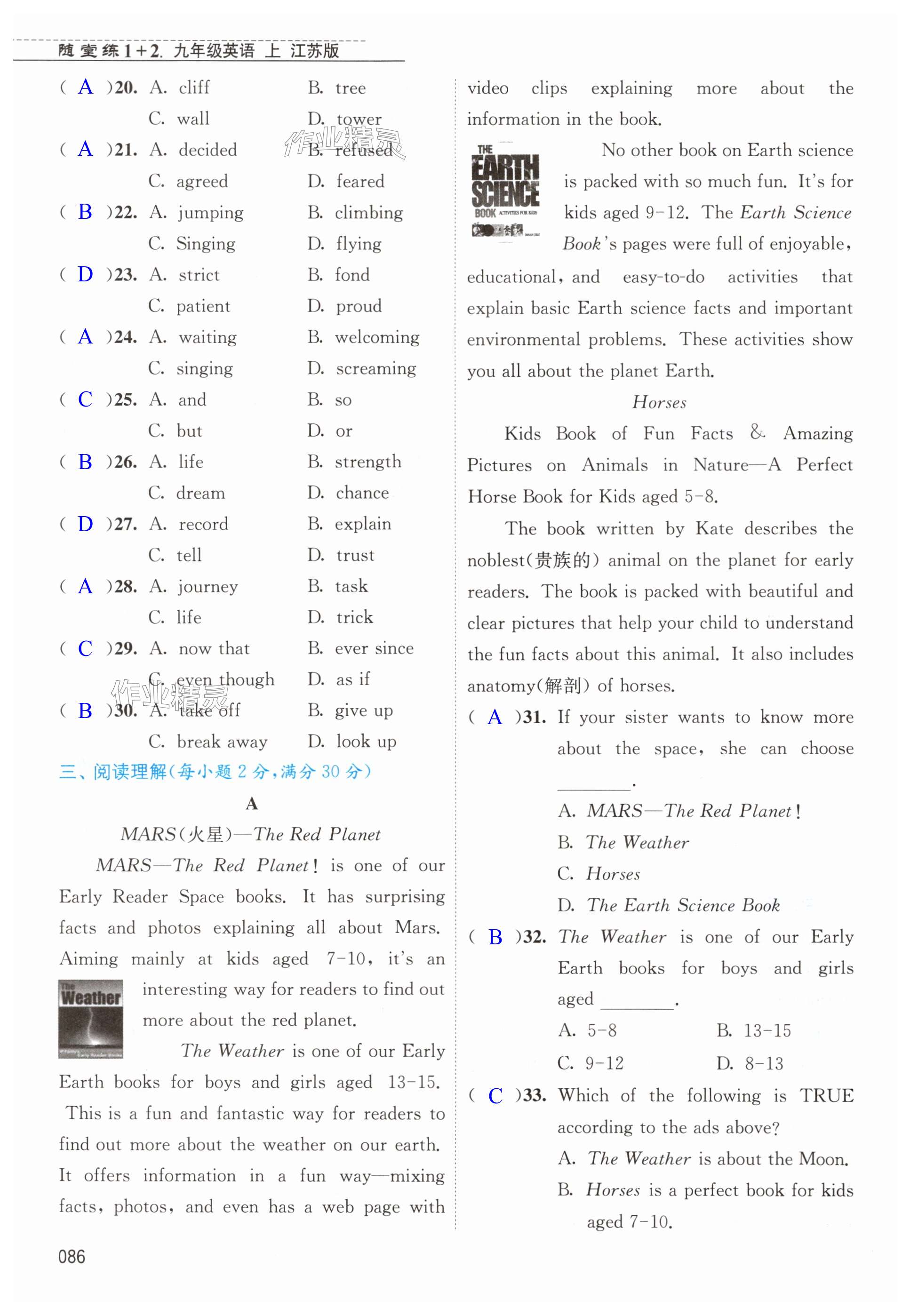 注:目前有些书本章节名称可能整理的还不是很完善,但都是按照顺序排列的,请同学们按照顺序仔细查找。练习册 2023年随堂练1加2九年级英语上册译林版 答案主要是用来给同学们做完题方便对答案用的,请勿直接抄袭。