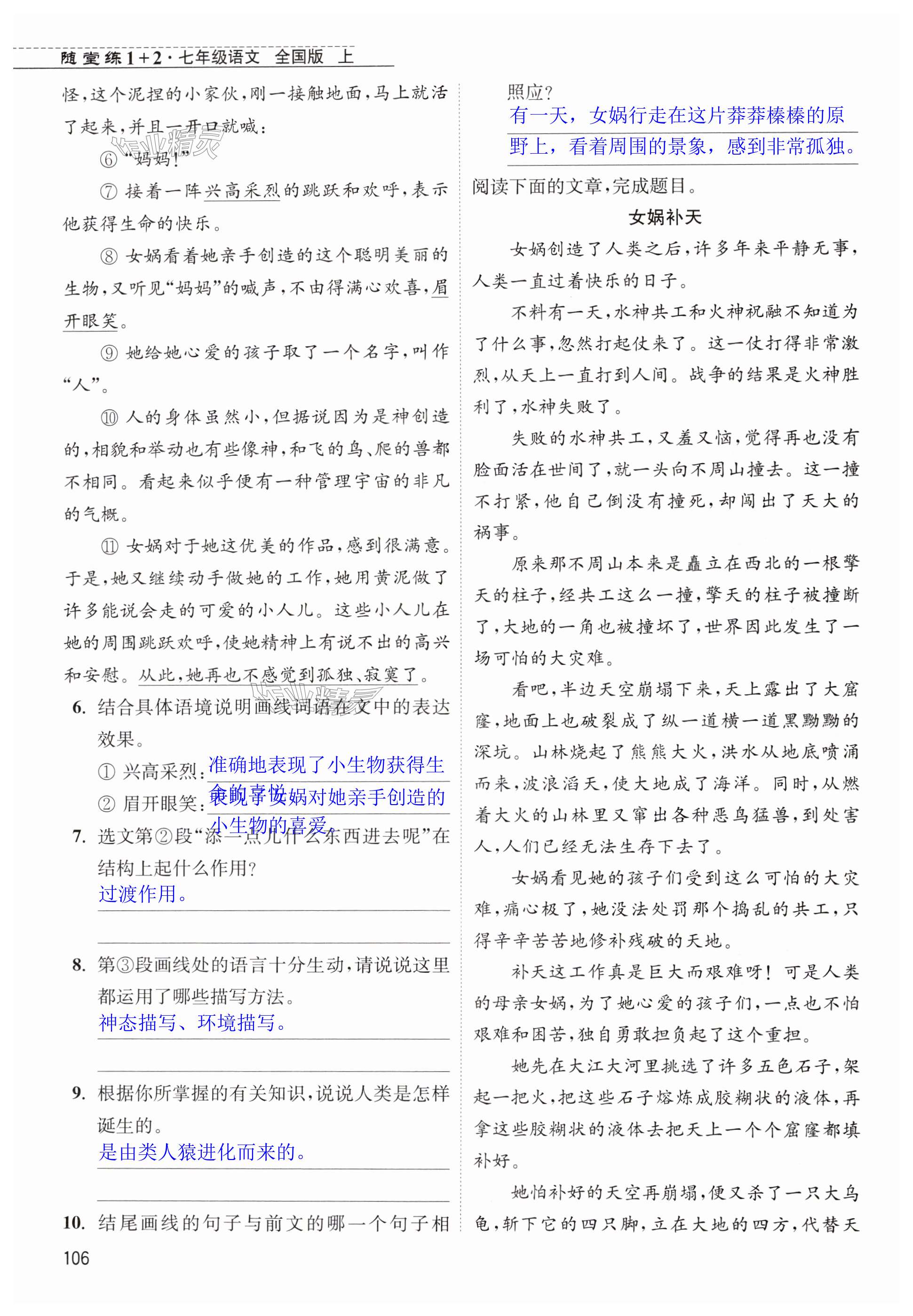注:目前有些书本章节名称可能整理的还不是很完善,但都是按照顺序排列的,请同学们按照顺序仔细查找。练习册 2024年随堂练1加2七年级语文上册人教版 答案主要是用来给同学们做完题方便对答案用的,请勿直接抄袭。