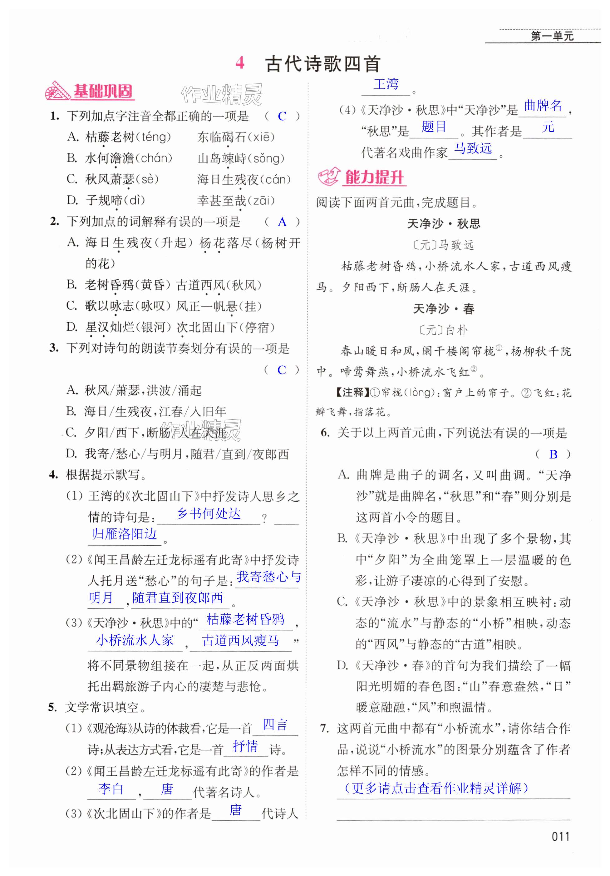 注:目前有些书本章节名称可能整理的还不是很完善,但都是按照顺序排列的,请同学们按照顺序仔细查找。练习册 2024年随堂练1加2七年级语文上册人教版 答案主要是用来给同学们做完题方便对答案用的,请勿直接抄袭。