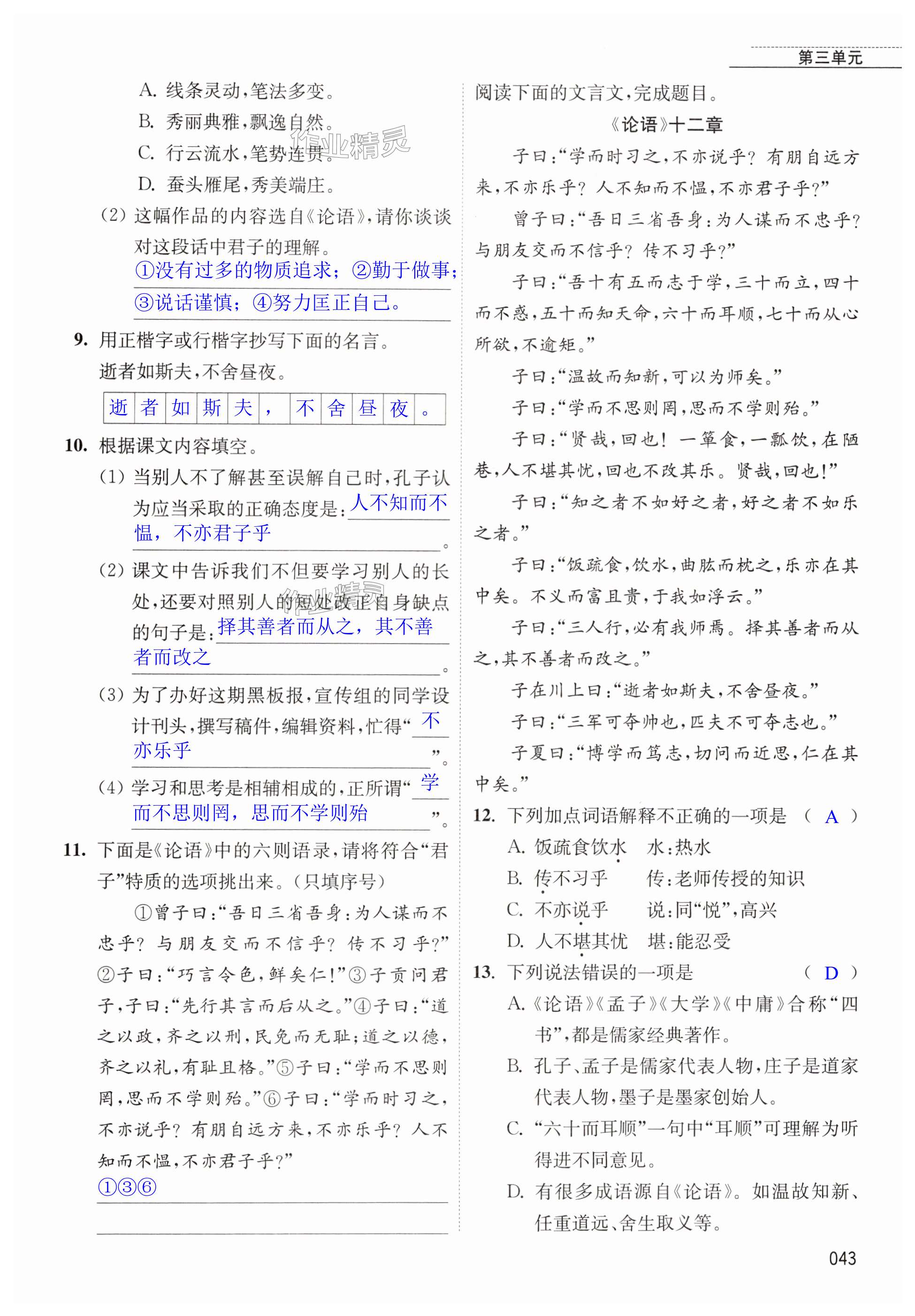 注:目前有些书本章节名称可能整理的还不是很完善,但都是按照顺序排列的,请同学们按照顺序仔细查找。练习册 2024年随堂练1加2七年级语文上册人教版 答案主要是用来给同学们做完题方便对答案用的,请勿直接抄袭。