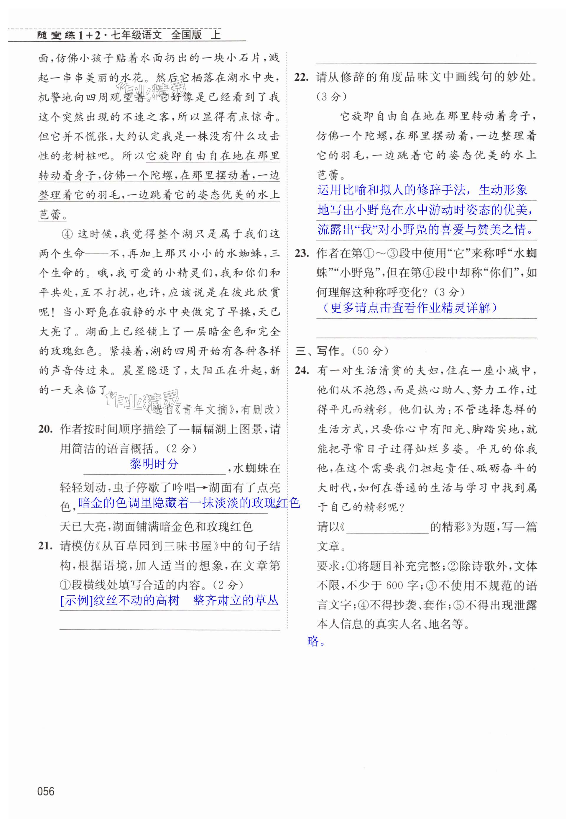 注:目前有些书本章节名称可能整理的还不是很完善,但都是按照顺序排列的,请同学们按照顺序仔细查找。练习册 2024年随堂练1加2七年级语文上册人教版 答案主要是用来给同学们做完题方便对答案用的,请勿直接抄袭。