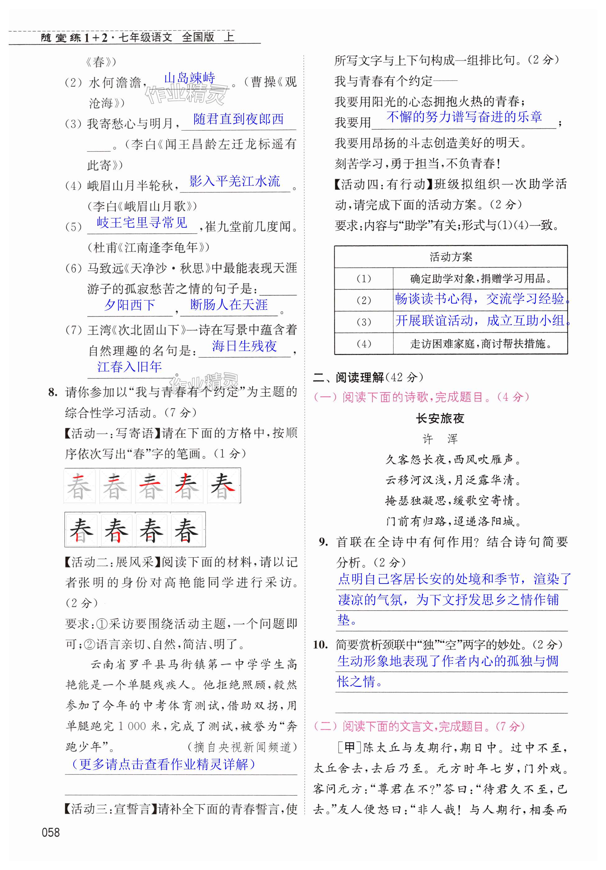 注:目前有些书本章节名称可能整理的还不是很完善,但都是按照顺序排列的,请同学们按照顺序仔细查找。练习册 2024年随堂练1加2七年级语文上册人教版 答案主要是用来给同学们做完题方便对答案用的,请勿直接抄袭。