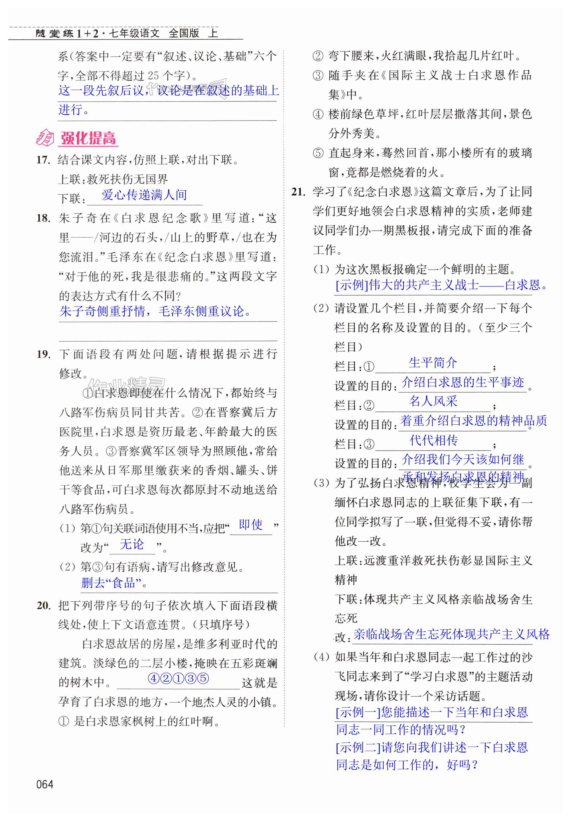注:目前有些书本章节名称可能整理的还不是很完善,但都是按照顺序排列的,请同学们按照顺序仔细查找。练习册 2024年随堂练1加2七年级语文上册人教版 答案主要是用来给同学们做完题方便对答案用的,请勿直接抄袭。