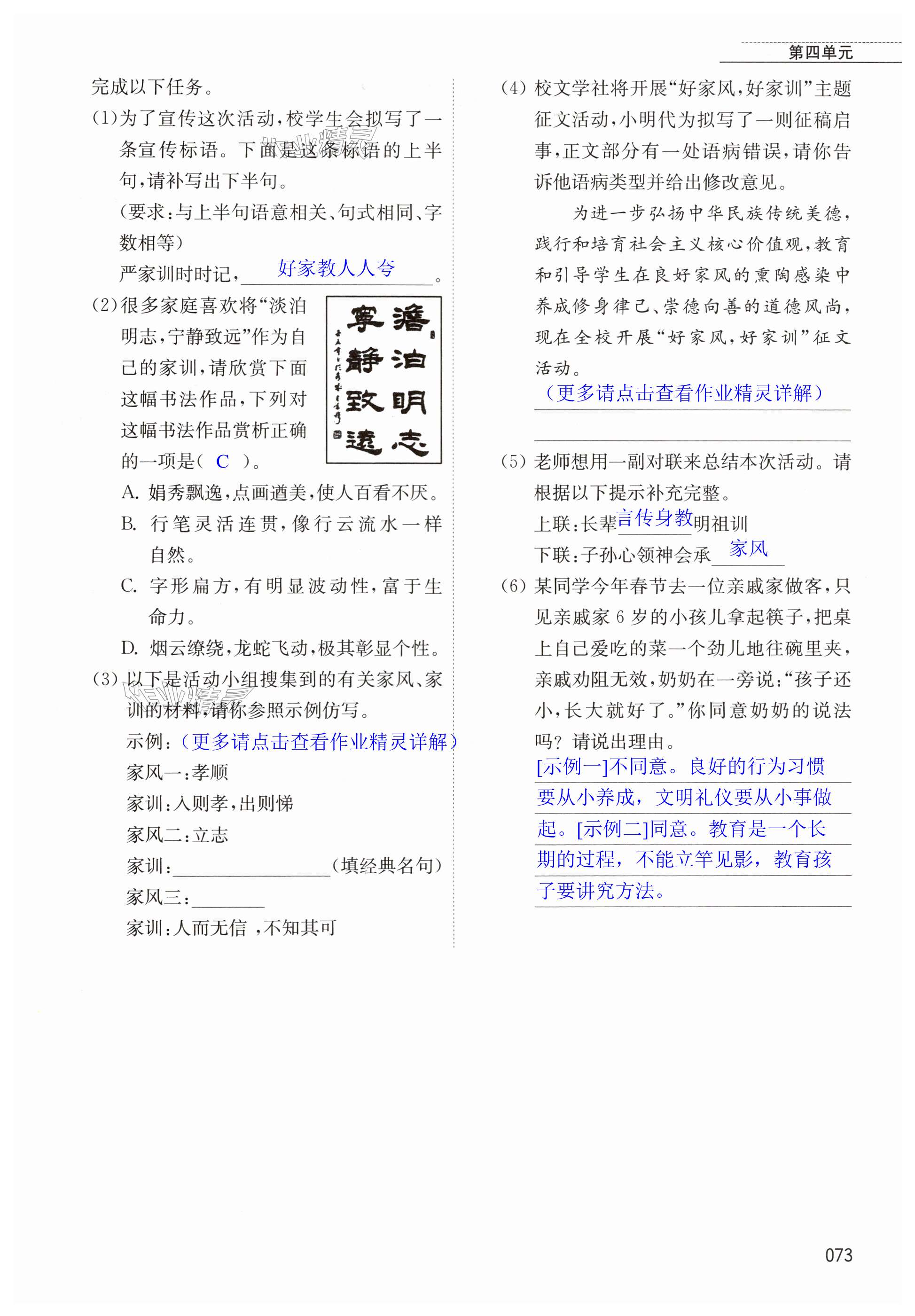 注:目前有些书本章节名称可能整理的还不是很完善,但都是按照顺序排列的,请同学们按照顺序仔细查找。练习册 2024年随堂练1加2七年级语文上册人教版 答案主要是用来给同学们做完题方便对答案用的,请勿直接抄袭。