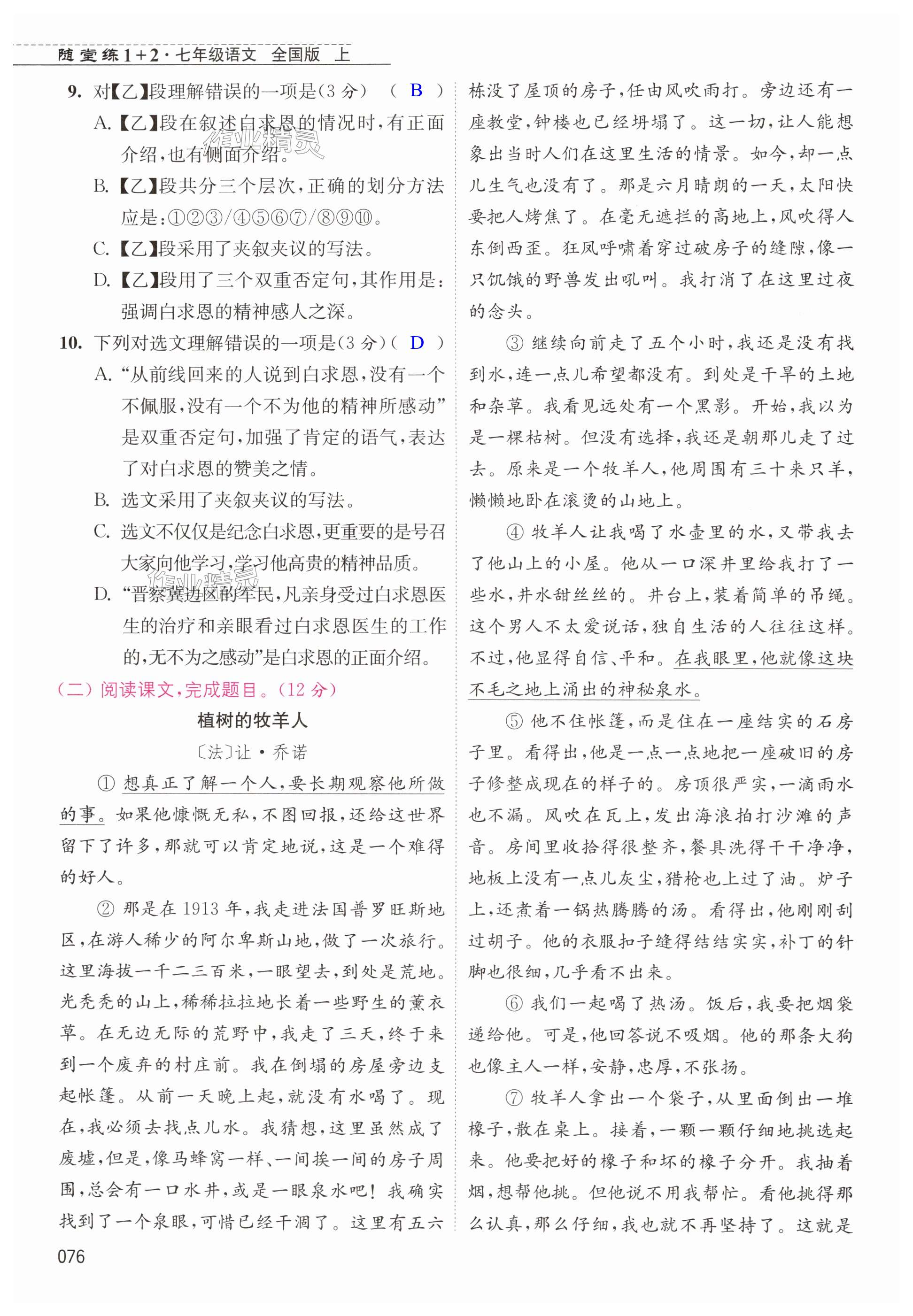 注:目前有些书本章节名称可能整理的还不是很完善,但都是按照顺序排列的,请同学们按照顺序仔细查找。练习册 2024年随堂练1加2七年级语文上册人教版 答案主要是用来给同学们做完题方便对答案用的,请勿直接抄袭。