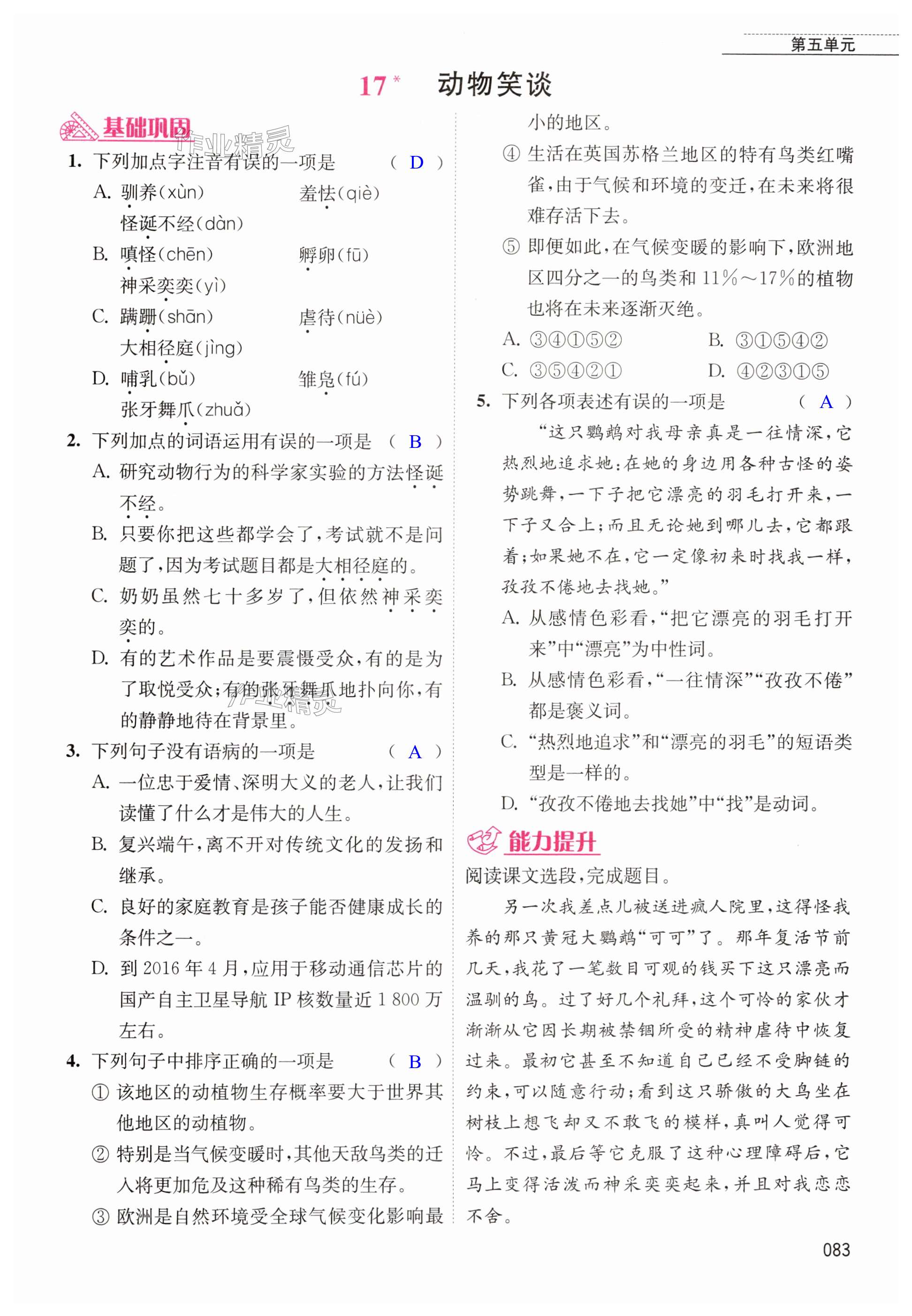注:目前有些书本章节名称可能整理的还不是很完善,但都是按照顺序排列的,请同学们按照顺序仔细查找。练习册 2024年随堂练1加2七年级语文上册人教版 答案主要是用来给同学们做完题方便对答案用的,请勿直接抄袭。
