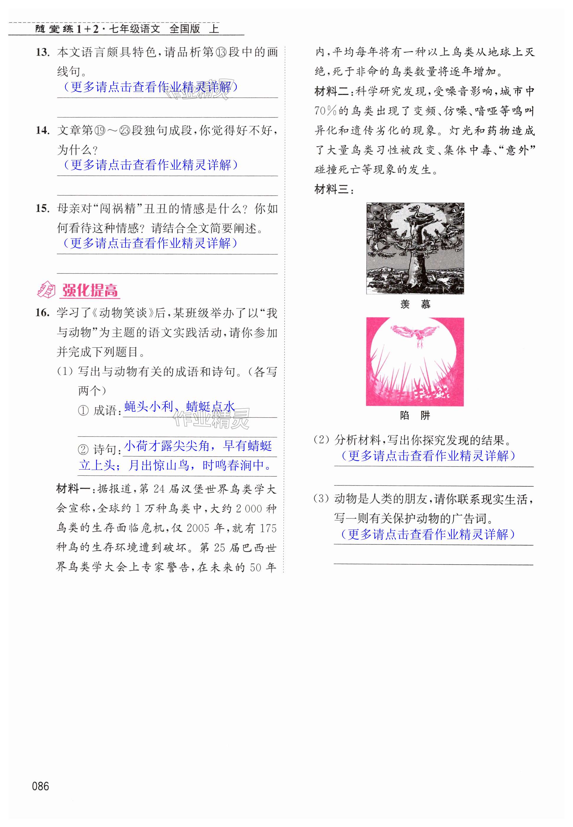 注:目前有些书本章节名称可能整理的还不是很完善,但都是按照顺序排列的,请同学们按照顺序仔细查找。练习册 2024年随堂练1加2七年级语文上册人教版 答案主要是用来给同学们做完题方便对答案用的,请勿直接抄袭。