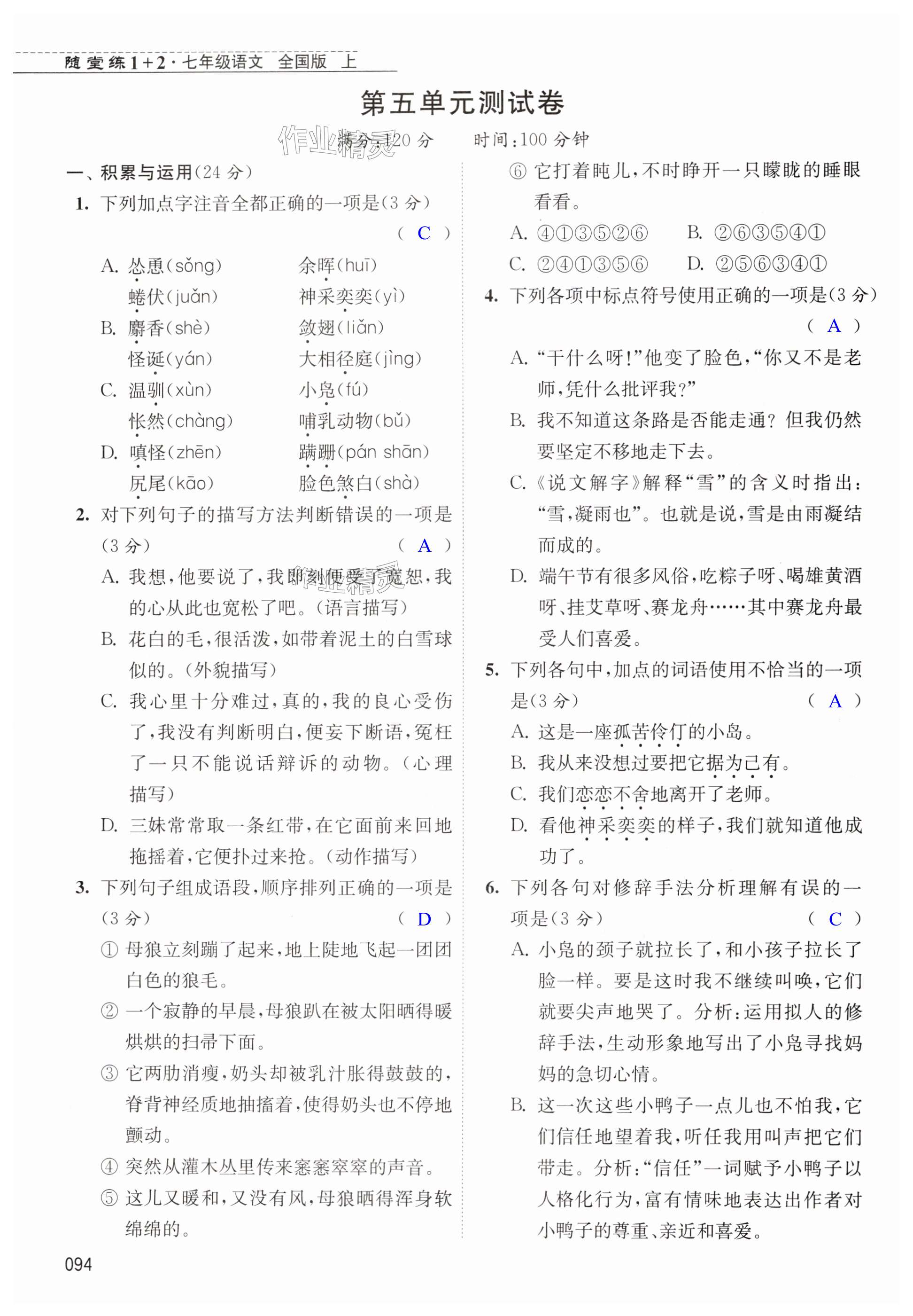注:目前有些书本章节名称可能整理的还不是很完善,但都是按照顺序排列的,请同学们按照顺序仔细查找。练习册 2024年随堂练1加2七年级语文上册人教版 答案主要是用来给同学们做完题方便对答案用的,请勿直接抄袭。