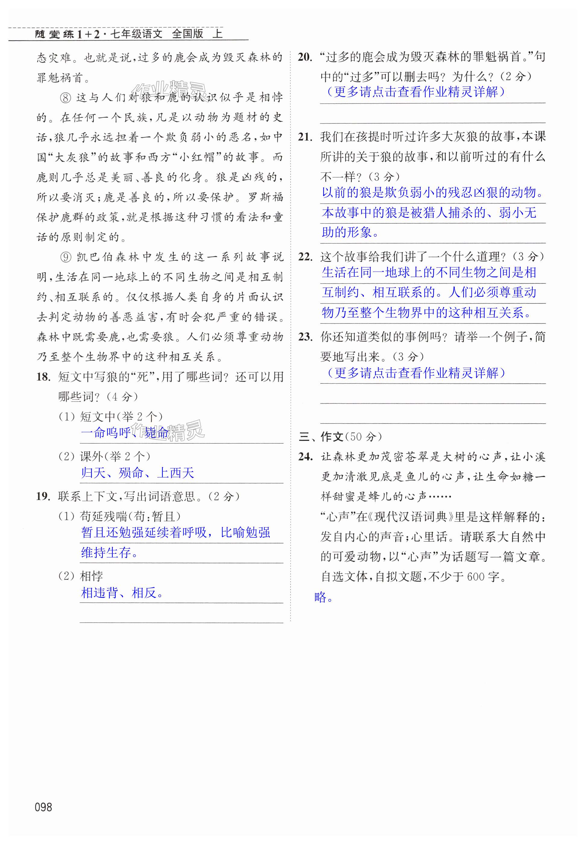 注:目前有些书本章节名称可能整理的还不是很完善,但都是按照顺序排列的,请同学们按照顺序仔细查找。练习册 2024年随堂练1加2七年级语文上册人教版 答案主要是用来给同学们做完题方便对答案用的,请勿直接抄袭。