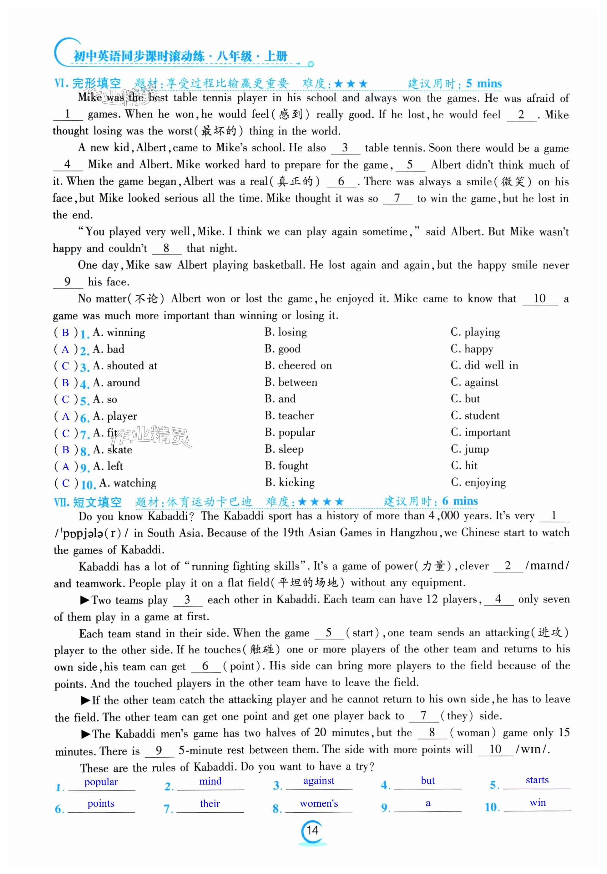 注:目前有些书本章节名称可能整理的还不是很完善,但都是按照顺序排列的,请同学们按照顺序仔细查找。练习册 2024年激情英语初中同步课时滚动练八年级上册仁爱版 答案主要是用来给同学们做完题方便对答案用的,请勿直接抄袭。