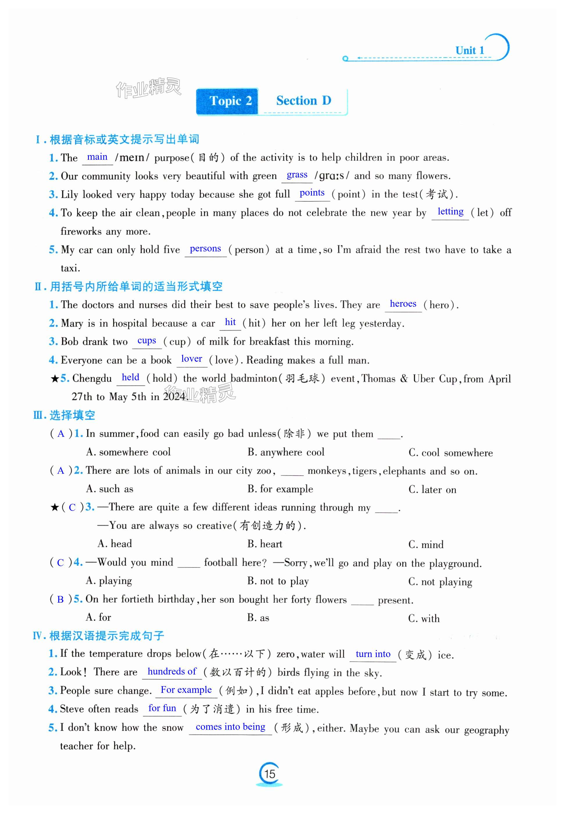 注:目前有些书本章节名称可能整理的还不是很完善,但都是按照顺序排列的,请同学们按照顺序仔细查找。练习册 2024年激情英语初中同步课时滚动练八年级上册仁爱版 答案主要是用来给同学们做完题方便对答案用的,请勿直接抄袭。