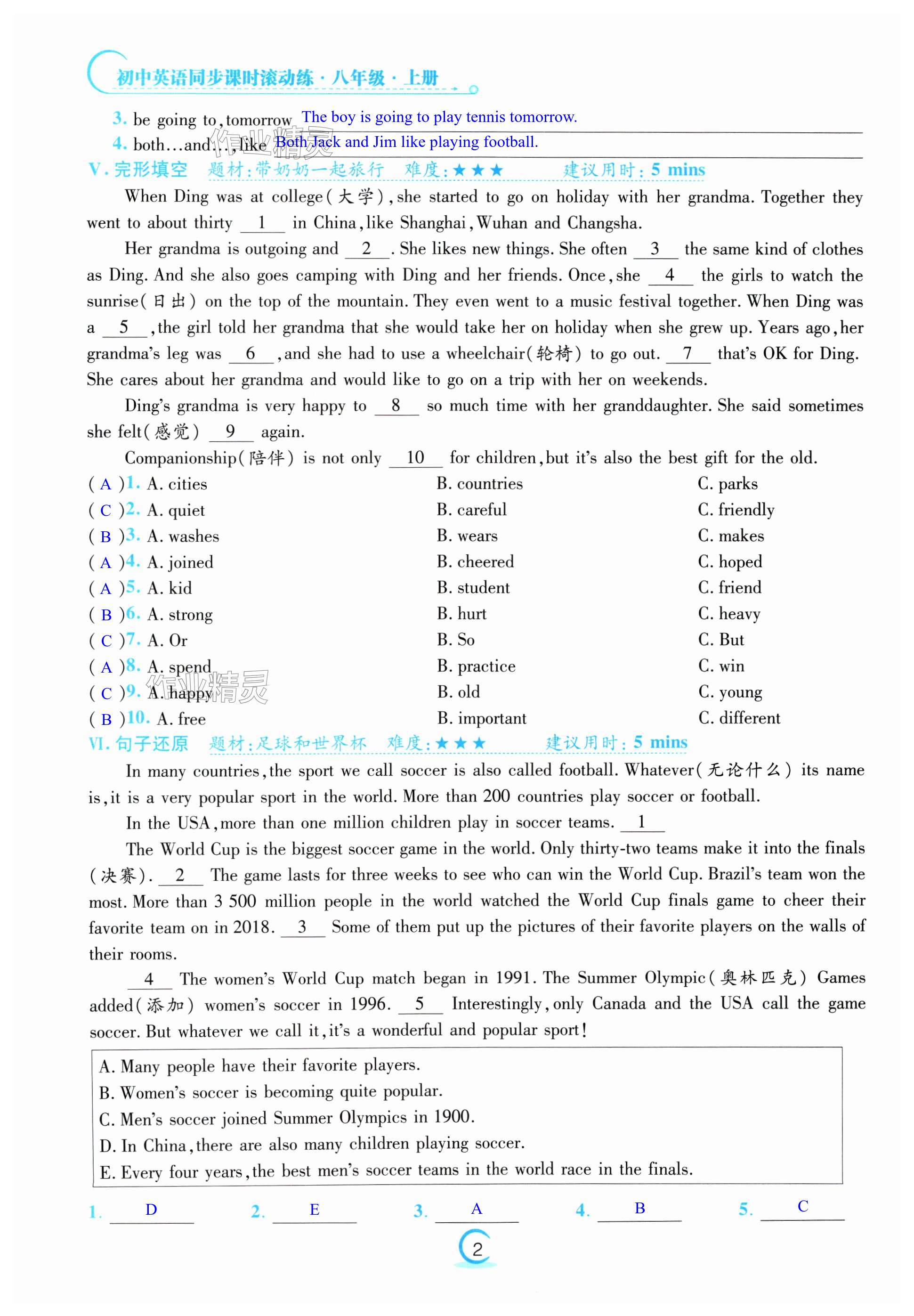 注:目前有些书本章节名称可能整理的还不是很完善,但都是按照顺序排列的,请同学们按照顺序仔细查找。练习册 2024年激情英语初中同步课时滚动练八年级上册仁爱版 答案主要是用来给同学们做完题方便对答案用的,请勿直接抄袭。
