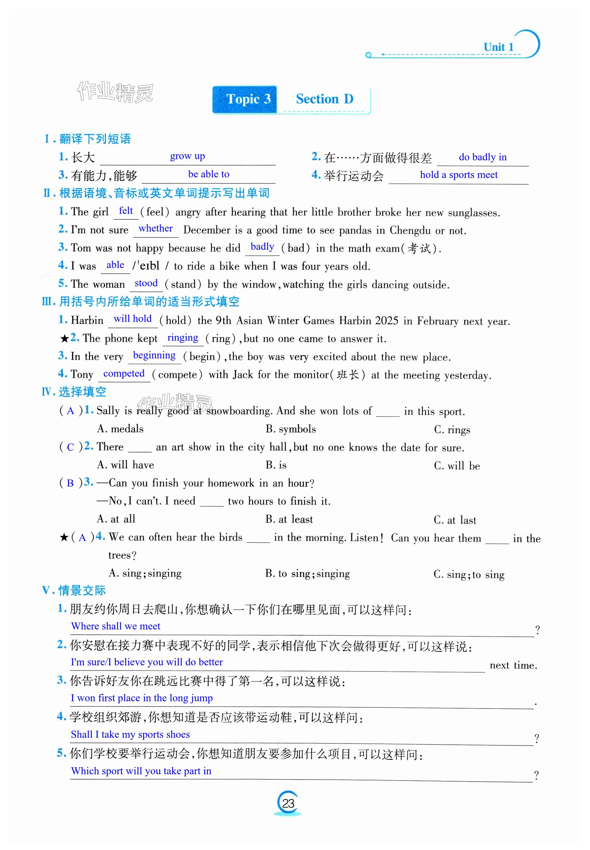 注:目前有些书本章节名称可能整理的还不是很完善,但都是按照顺序排列的,请同学们按照顺序仔细查找。练习册 2024年激情英语初中同步课时滚动练八年级上册仁爱版 答案主要是用来给同学们做完题方便对答案用的,请勿直接抄袭。