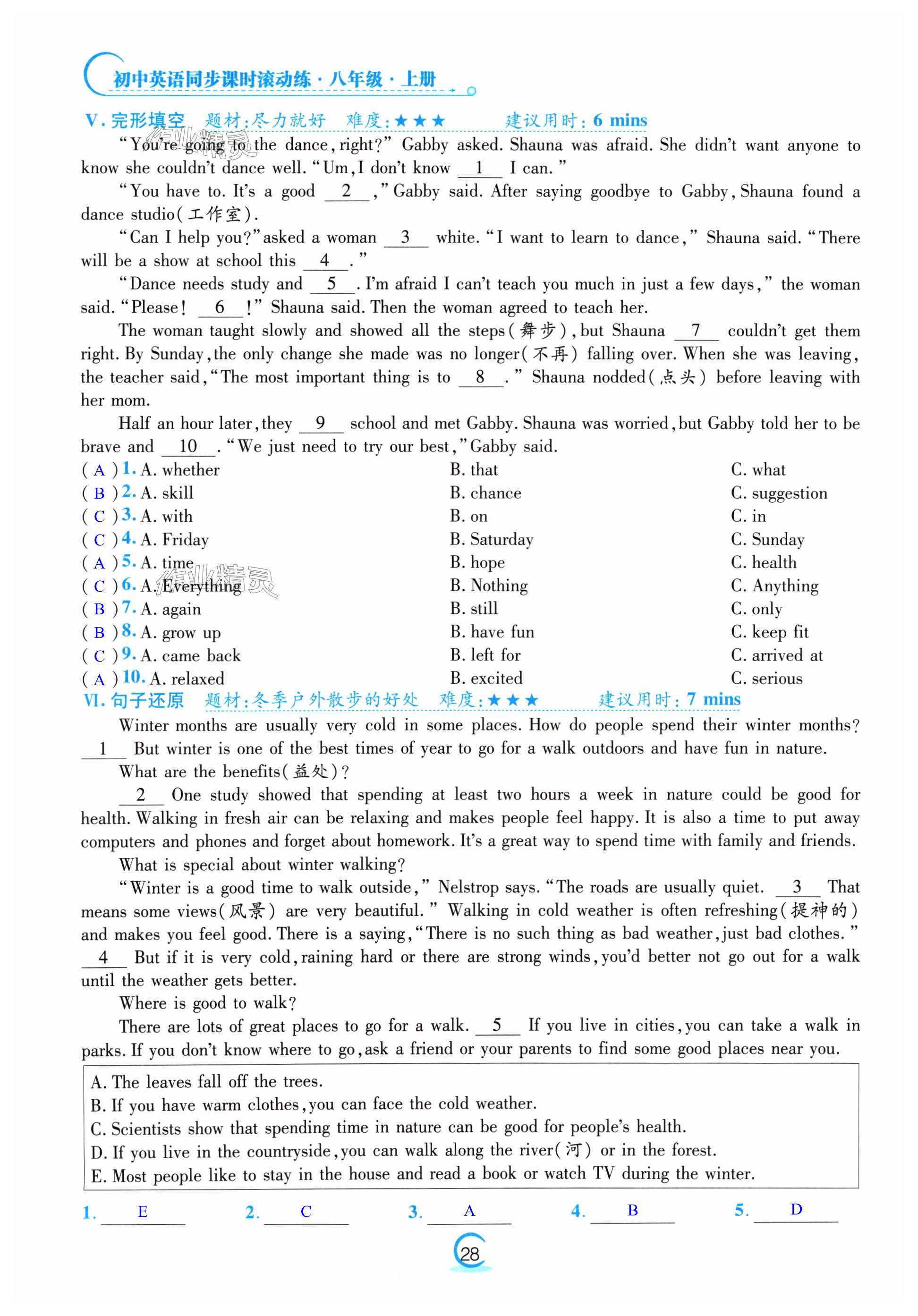 注:目前有些书本章节名称可能整理的还不是很完善,但都是按照顺序排列的,请同学们按照顺序仔细查找。练习册 2024年激情英语初中同步课时滚动练八年级上册仁爱版 答案主要是用来给同学们做完题方便对答案用的,请勿直接抄袭。