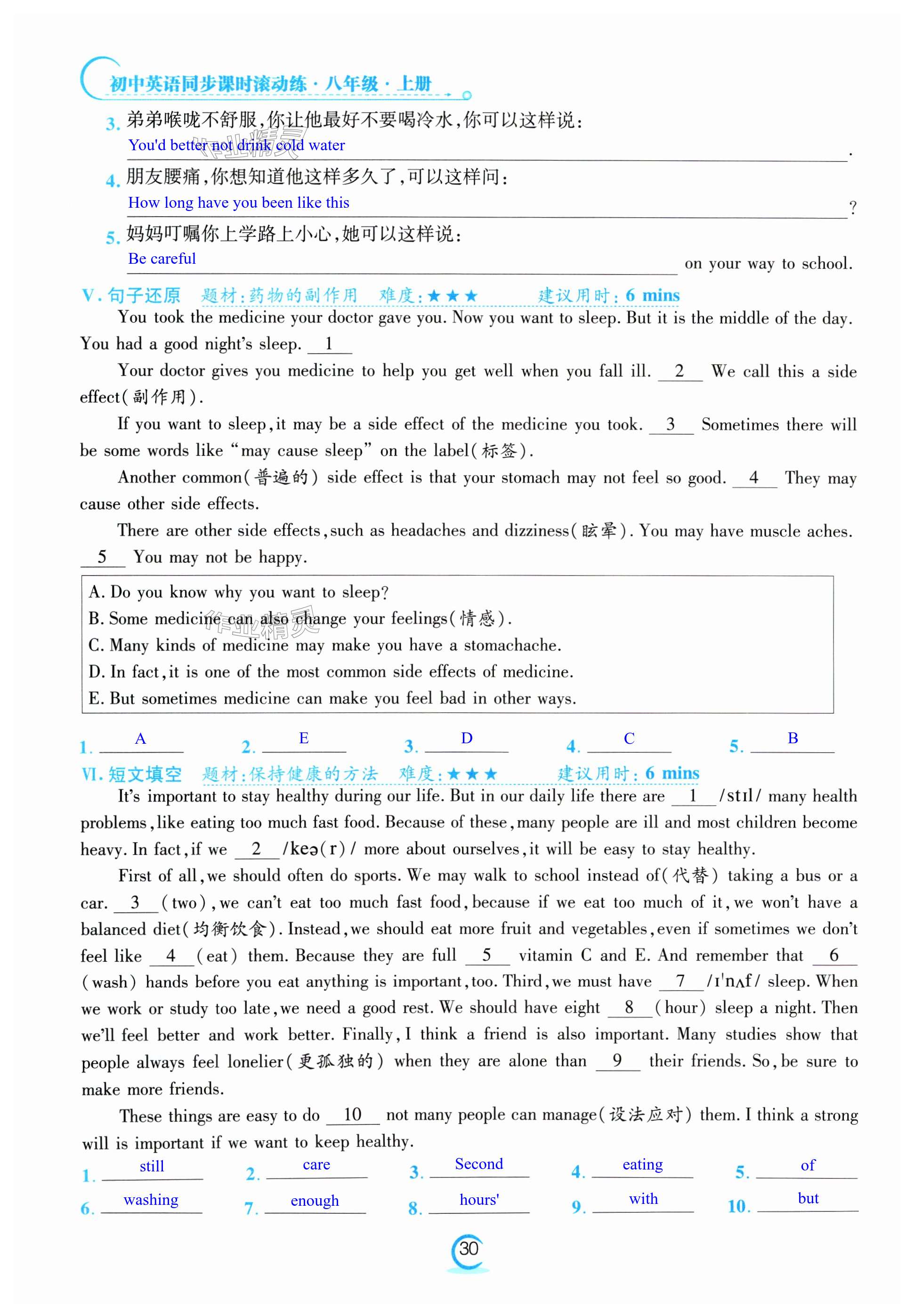 注:目前有些书本章节名称可能整理的还不是很完善,但都是按照顺序排列的,请同学们按照顺序仔细查找。练习册 2024年激情英语初中同步课时滚动练八年级上册仁爱版 答案主要是用来给同学们做完题方便对答案用的,请勿直接抄袭。