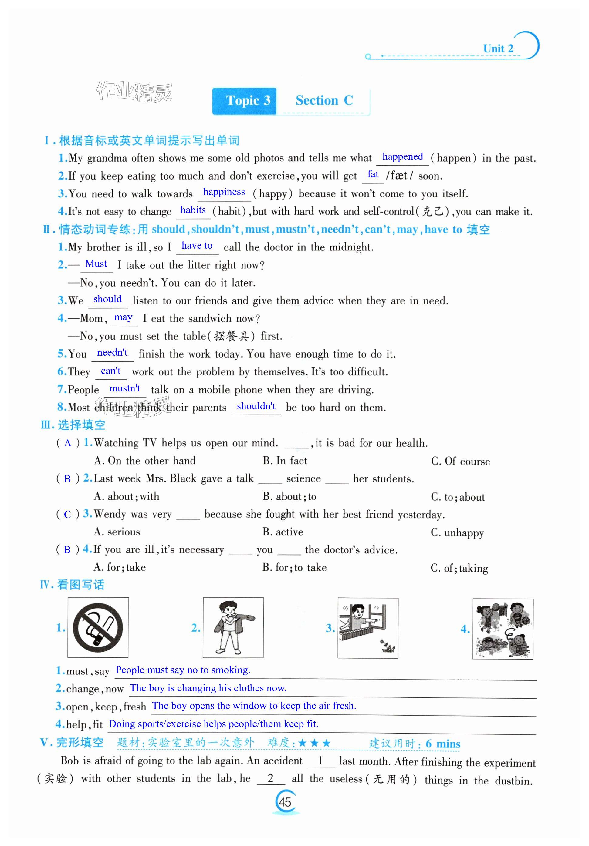 注:目前有些书本章节名称可能整理的还不是很完善,但都是按照顺序排列的,请同学们按照顺序仔细查找。练习册 2024年激情英语初中同步课时滚动练八年级上册仁爱版 答案主要是用来给同学们做完题方便对答案用的,请勿直接抄袭。