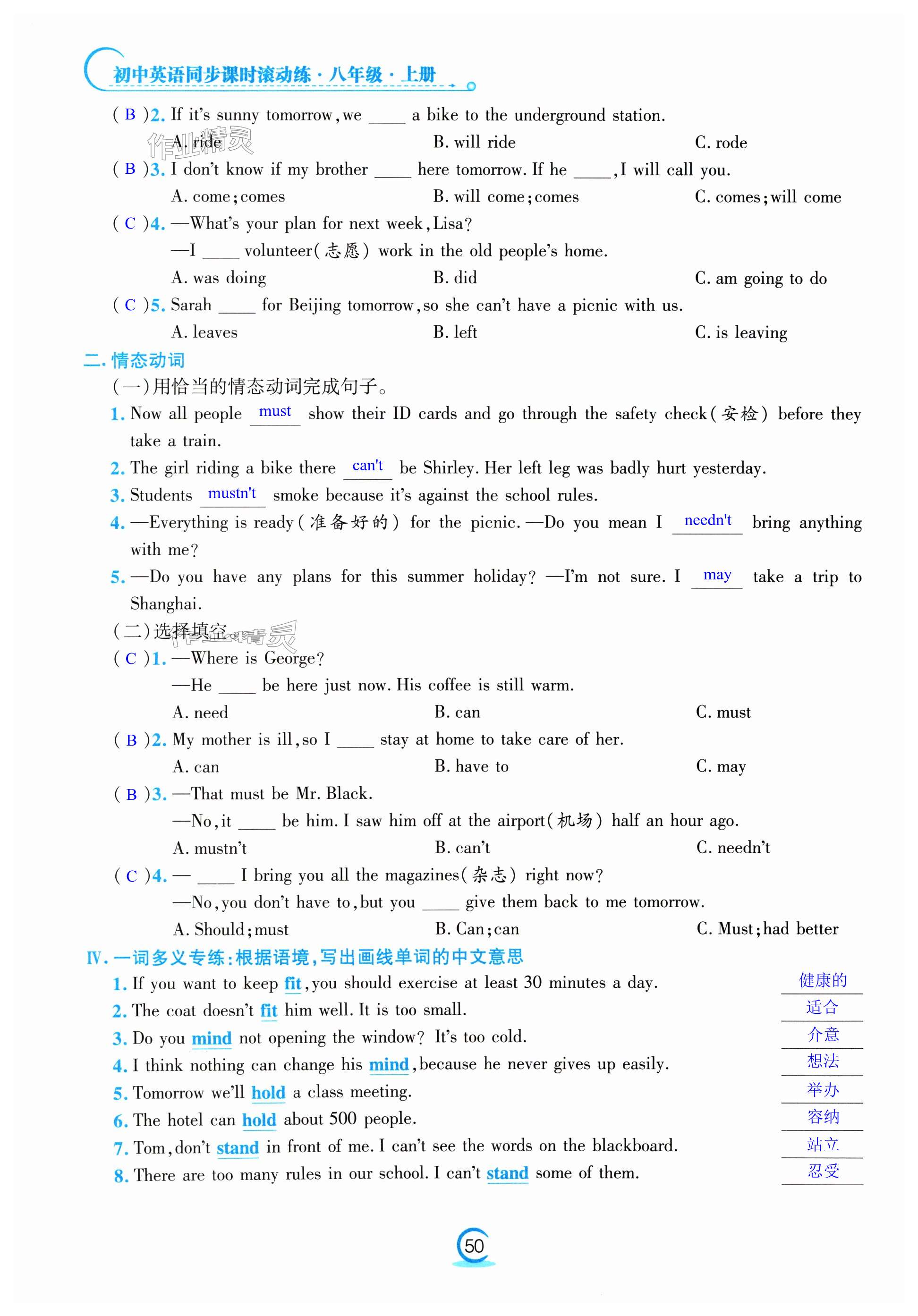注:目前有些书本章节名称可能整理的还不是很完善,但都是按照顺序排列的,请同学们按照顺序仔细查找。练习册 2024年激情英语初中同步课时滚动练八年级上册仁爱版 答案主要是用来给同学们做完题方便对答案用的,请勿直接抄袭。