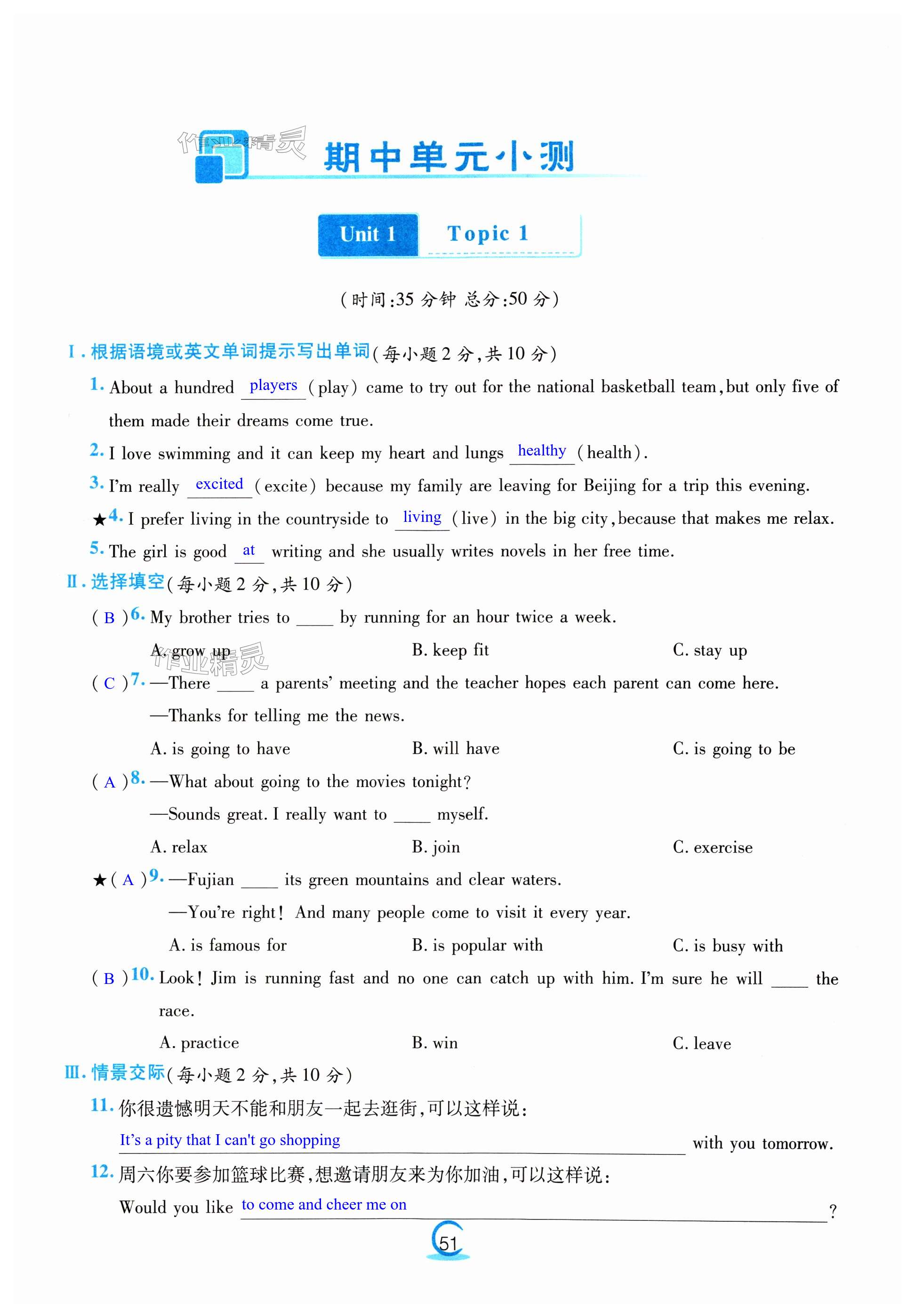 注:目前有些书本章节名称可能整理的还不是很完善,但都是按照顺序排列的,请同学们按照顺序仔细查找。练习册 2024年激情英语初中同步课时滚动练八年级上册仁爱版 答案主要是用来给同学们做完题方便对答案用的,请勿直接抄袭。