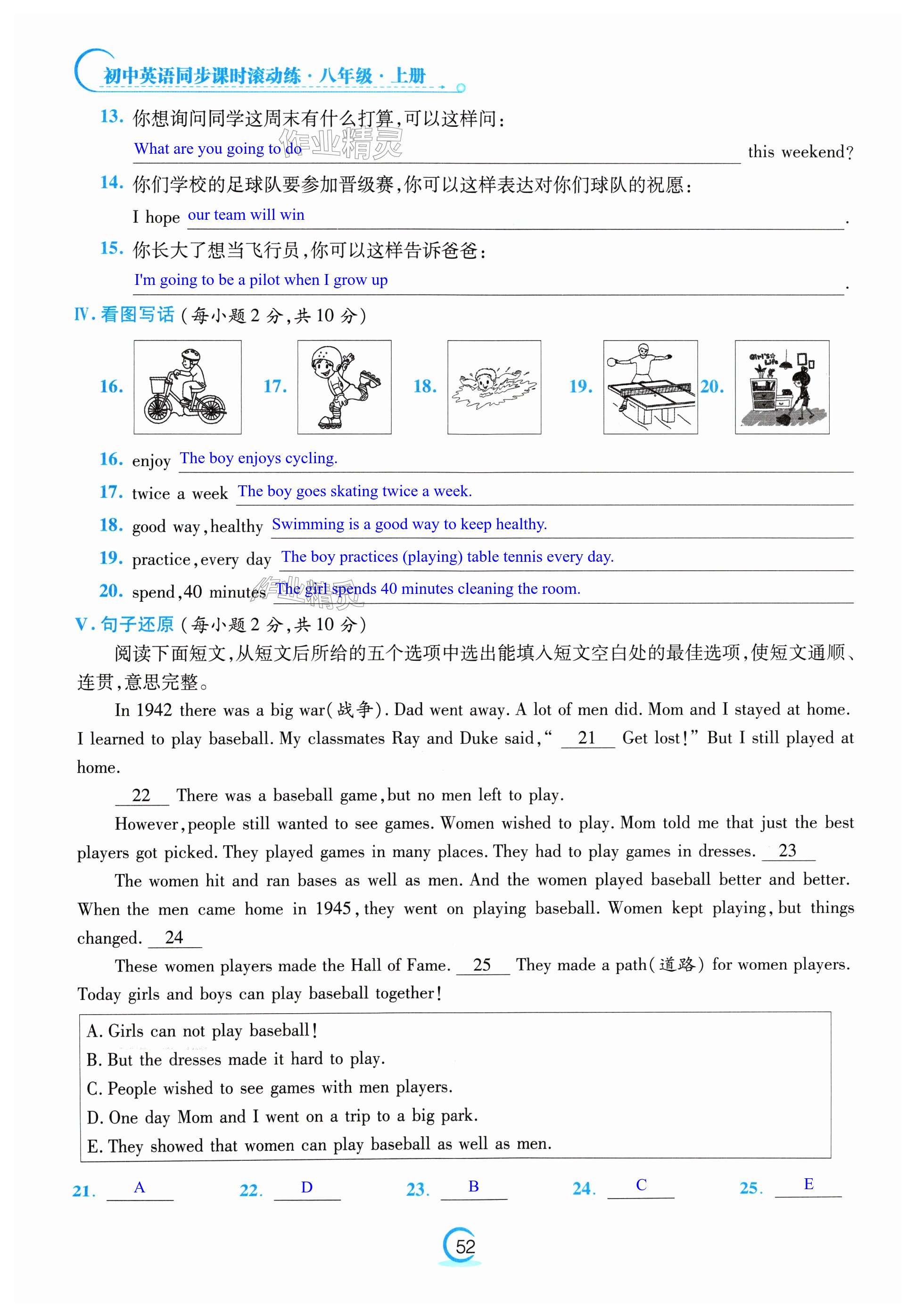 注:目前有些书本章节名称可能整理的还不是很完善,但都是按照顺序排列的,请同学们按照顺序仔细查找。练习册 2024年激情英语初中同步课时滚动练八年级上册仁爱版 答案主要是用来给同学们做完题方便对答案用的,请勿直接抄袭。