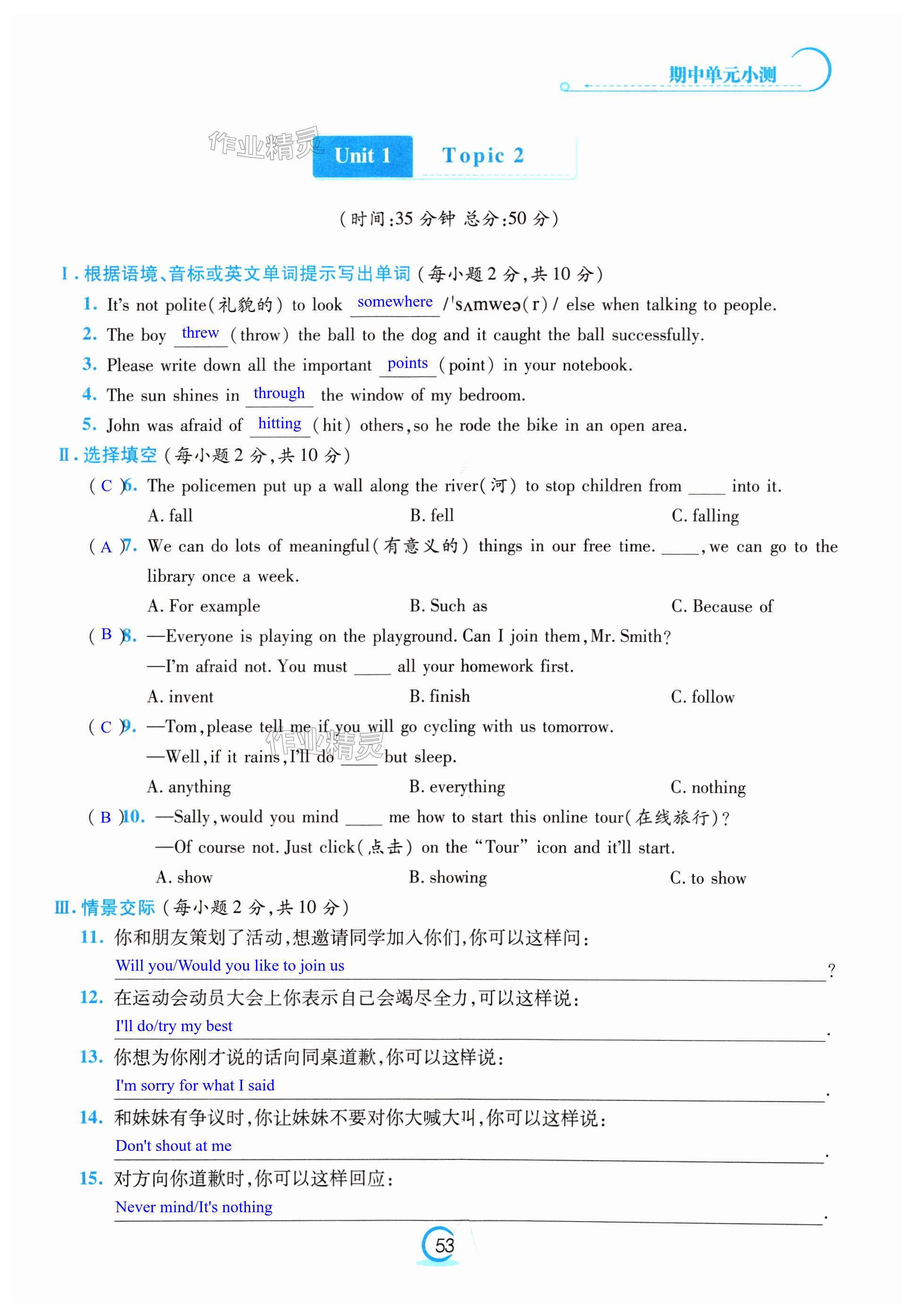 注:目前有些书本章节名称可能整理的还不是很完善,但都是按照顺序排列的,请同学们按照顺序仔细查找。练习册 2024年激情英语初中同步课时滚动练八年级上册仁爱版 答案主要是用来给同学们做完题方便对答案用的,请勿直接抄袭。