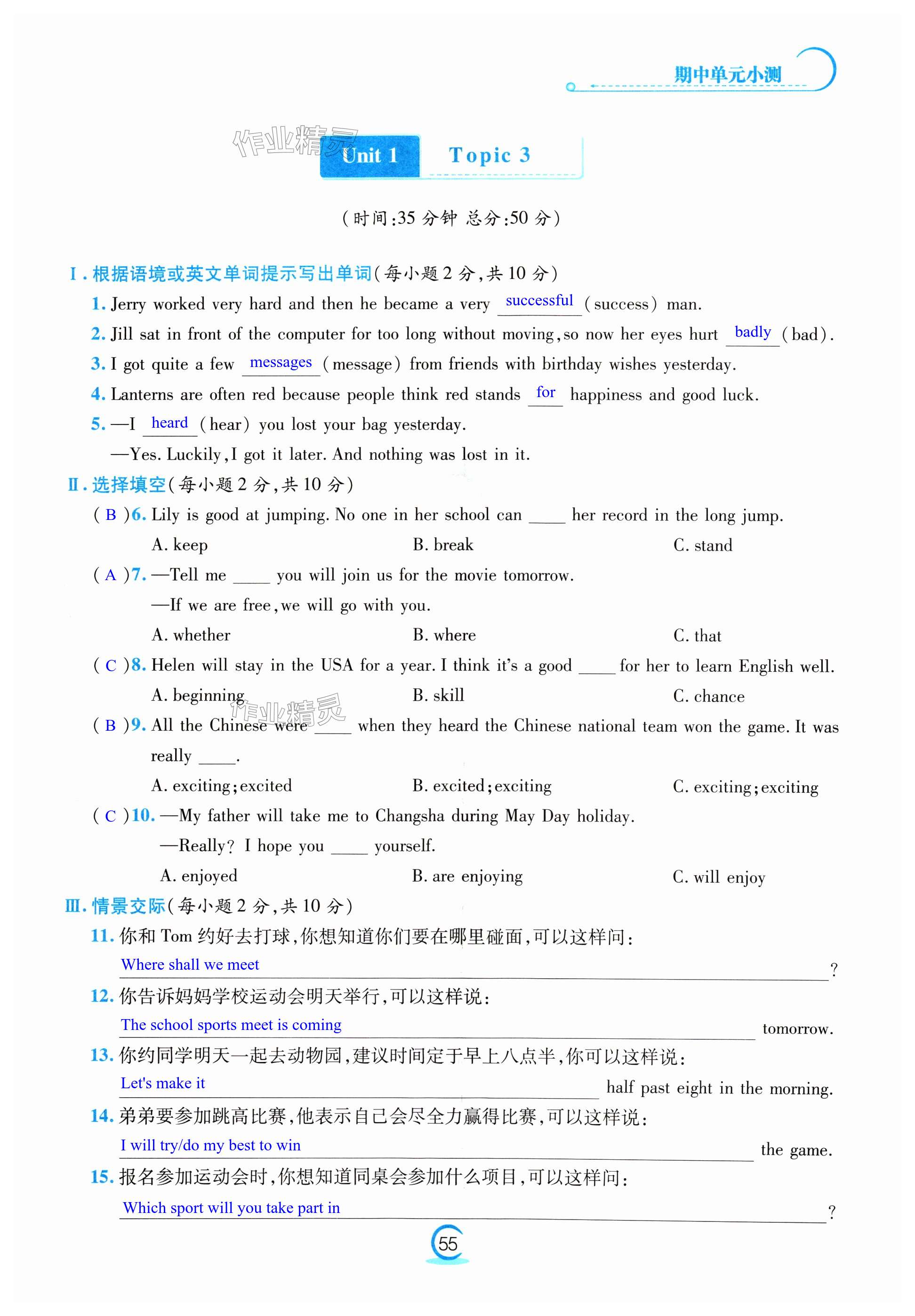 注:目前有些书本章节名称可能整理的还不是很完善,但都是按照顺序排列的,请同学们按照顺序仔细查找。练习册 2024年激情英语初中同步课时滚动练八年级上册仁爱版 答案主要是用来给同学们做完题方便对答案用的,请勿直接抄袭。