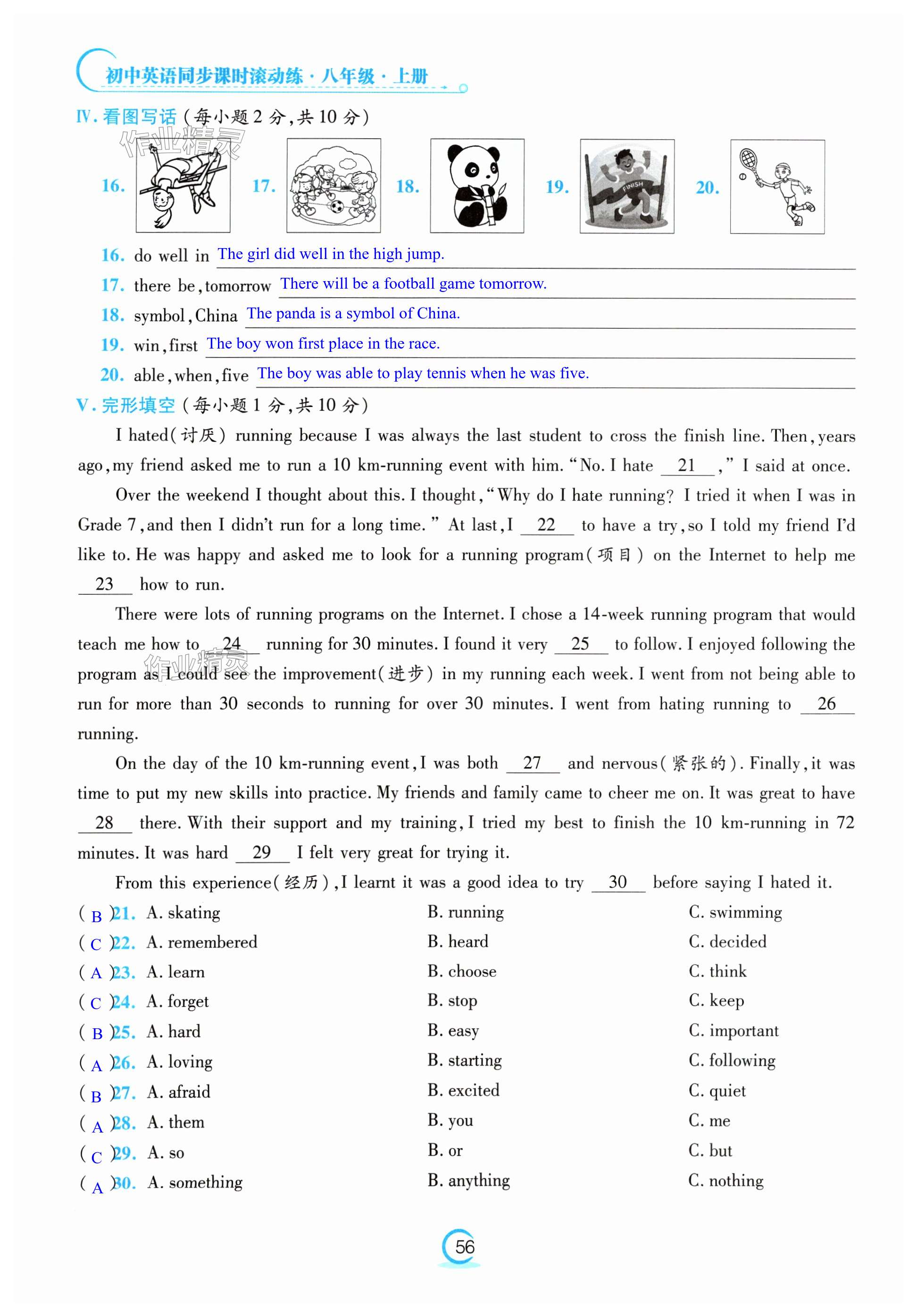 注:目前有些书本章节名称可能整理的还不是很完善,但都是按照顺序排列的,请同学们按照顺序仔细查找。练习册 2024年激情英语初中同步课时滚动练八年级上册仁爱版 答案主要是用来给同学们做完题方便对答案用的,请勿直接抄袭。