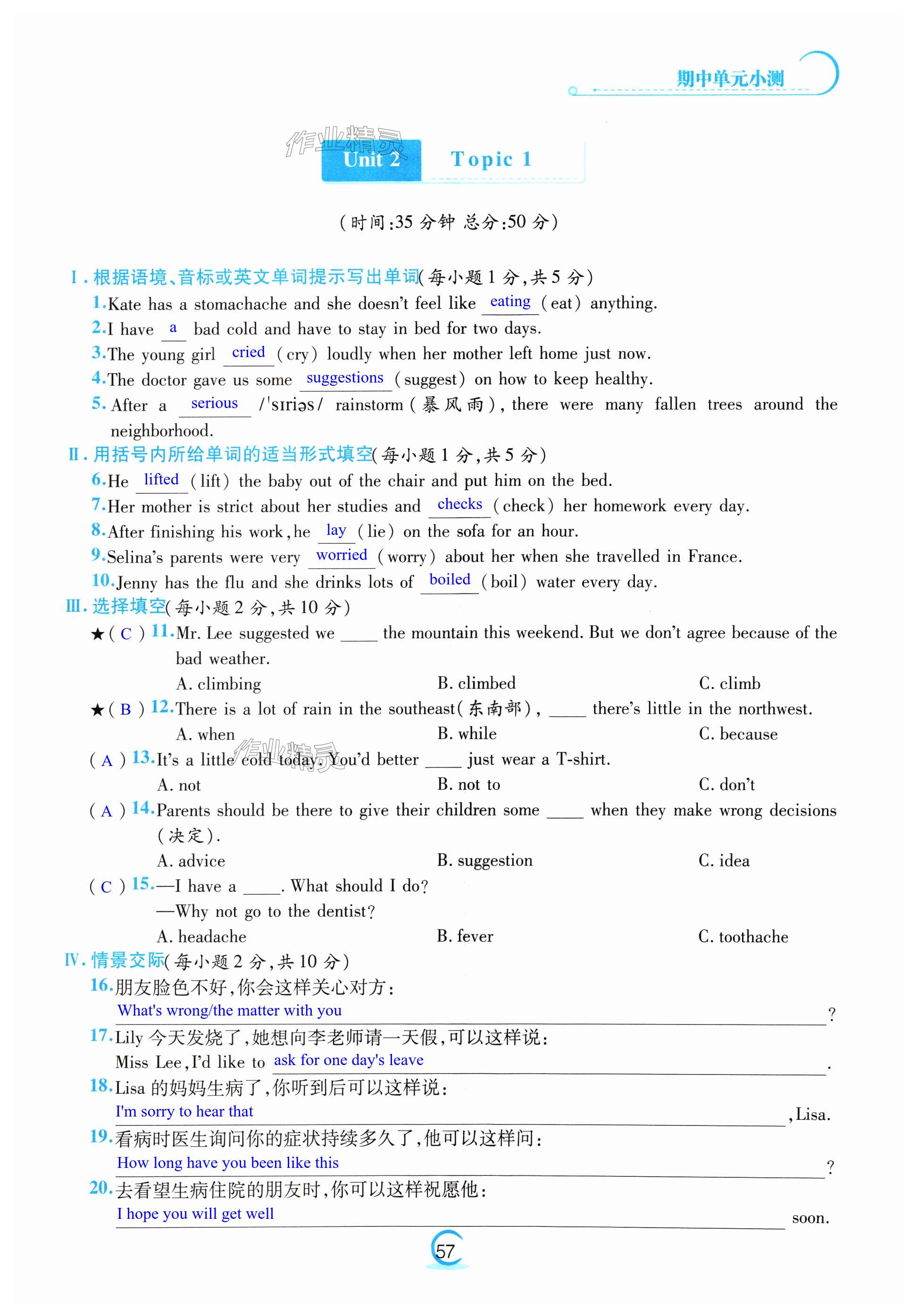 注:目前有些书本章节名称可能整理的还不是很完善,但都是按照顺序排列的,请同学们按照顺序仔细查找。练习册 2024年激情英语初中同步课时滚动练八年级上册仁爱版 答案主要是用来给同学们做完题方便对答案用的,请勿直接抄袭。