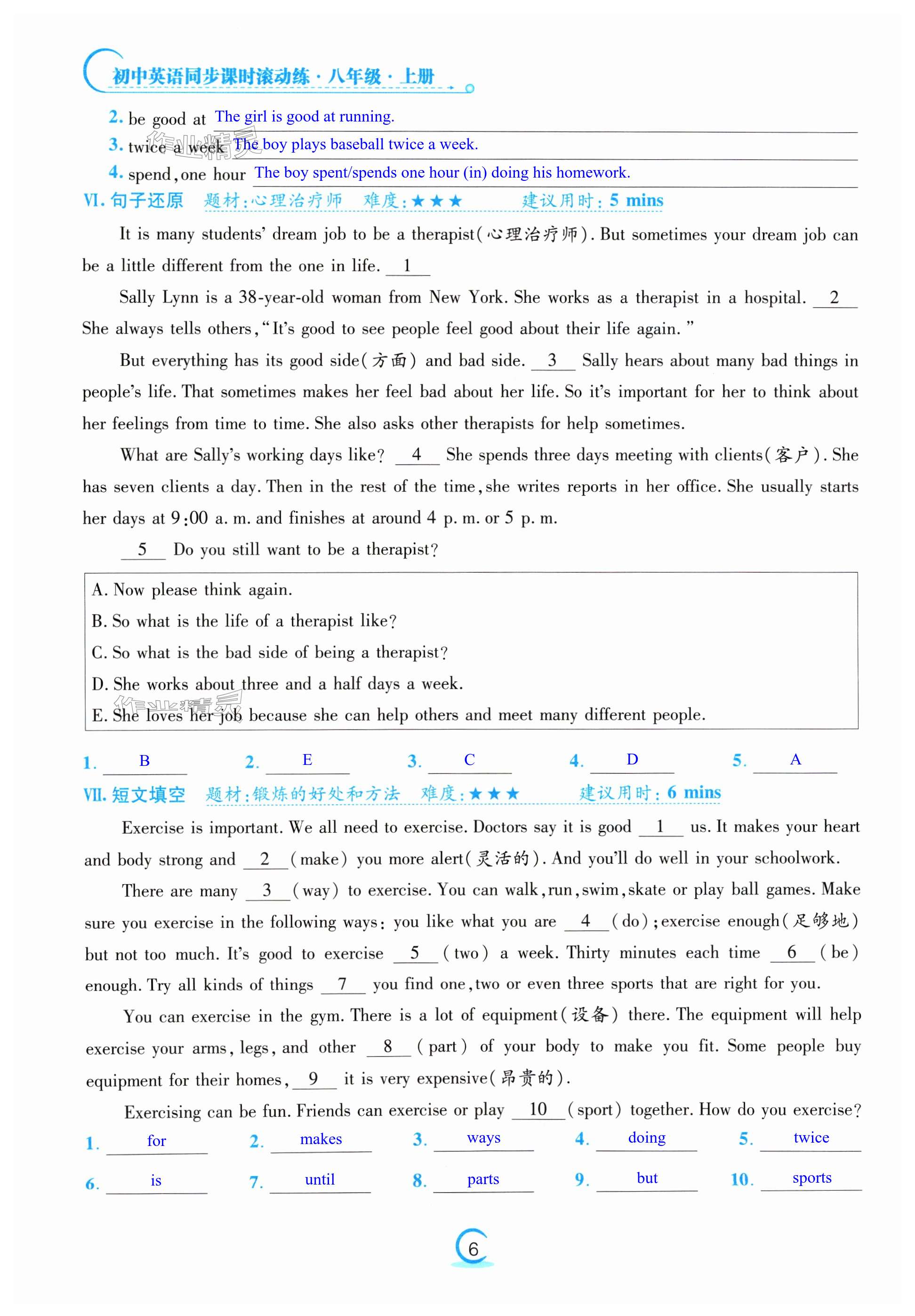 注:目前有些书本章节名称可能整理的还不是很完善,但都是按照顺序排列的,请同学们按照顺序仔细查找。练习册 2024年激情英语初中同步课时滚动练八年级上册仁爱版 答案主要是用来给同学们做完题方便对答案用的,请勿直接抄袭。