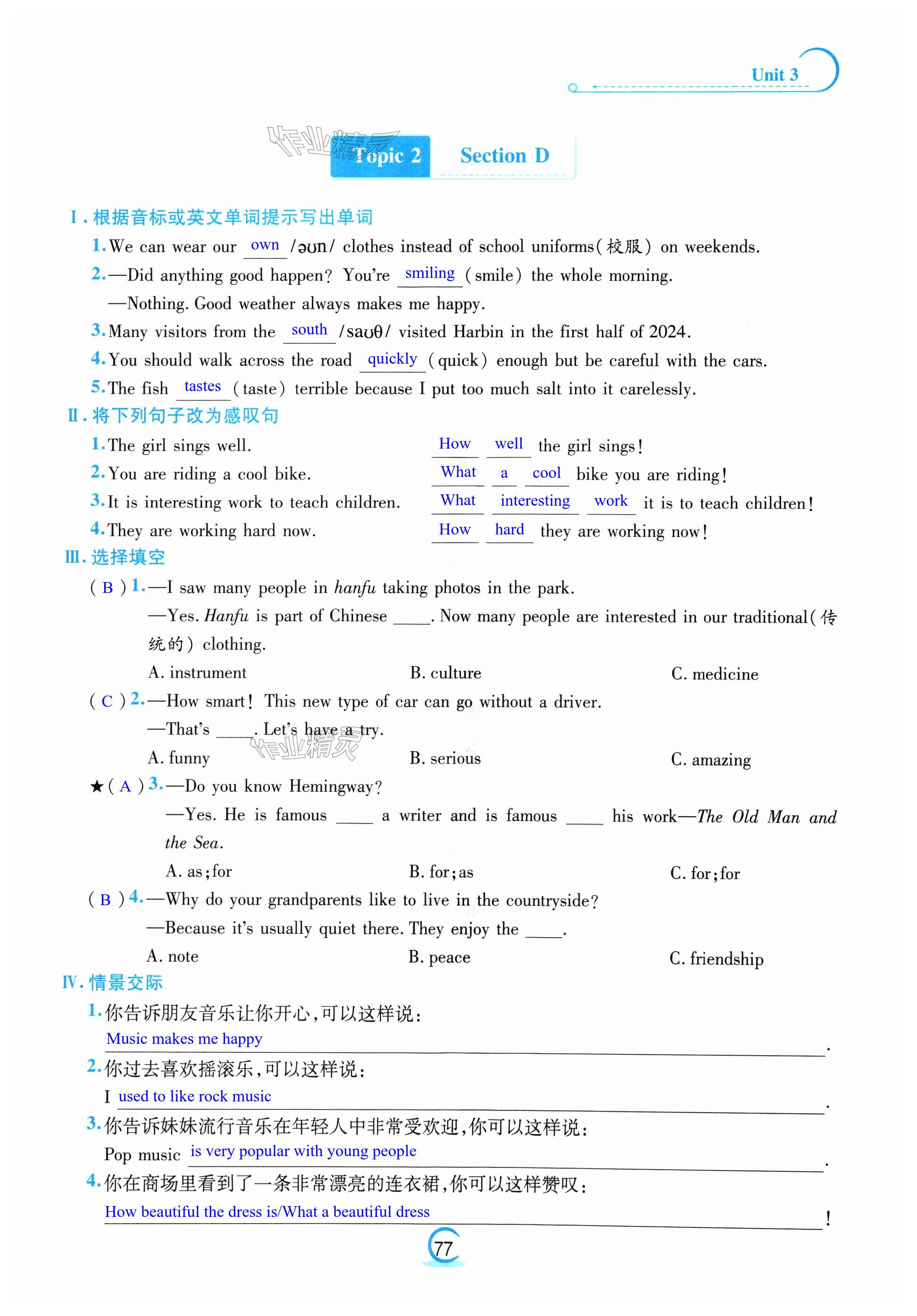 注:目前有些书本章节名称可能整理的还不是很完善,但都是按照顺序排列的,请同学们按照顺序仔细查找。练习册 2024年激情英语初中同步课时滚动练八年级上册仁爱版 答案主要是用来给同学们做完题方便对答案用的,请勿直接抄袭。