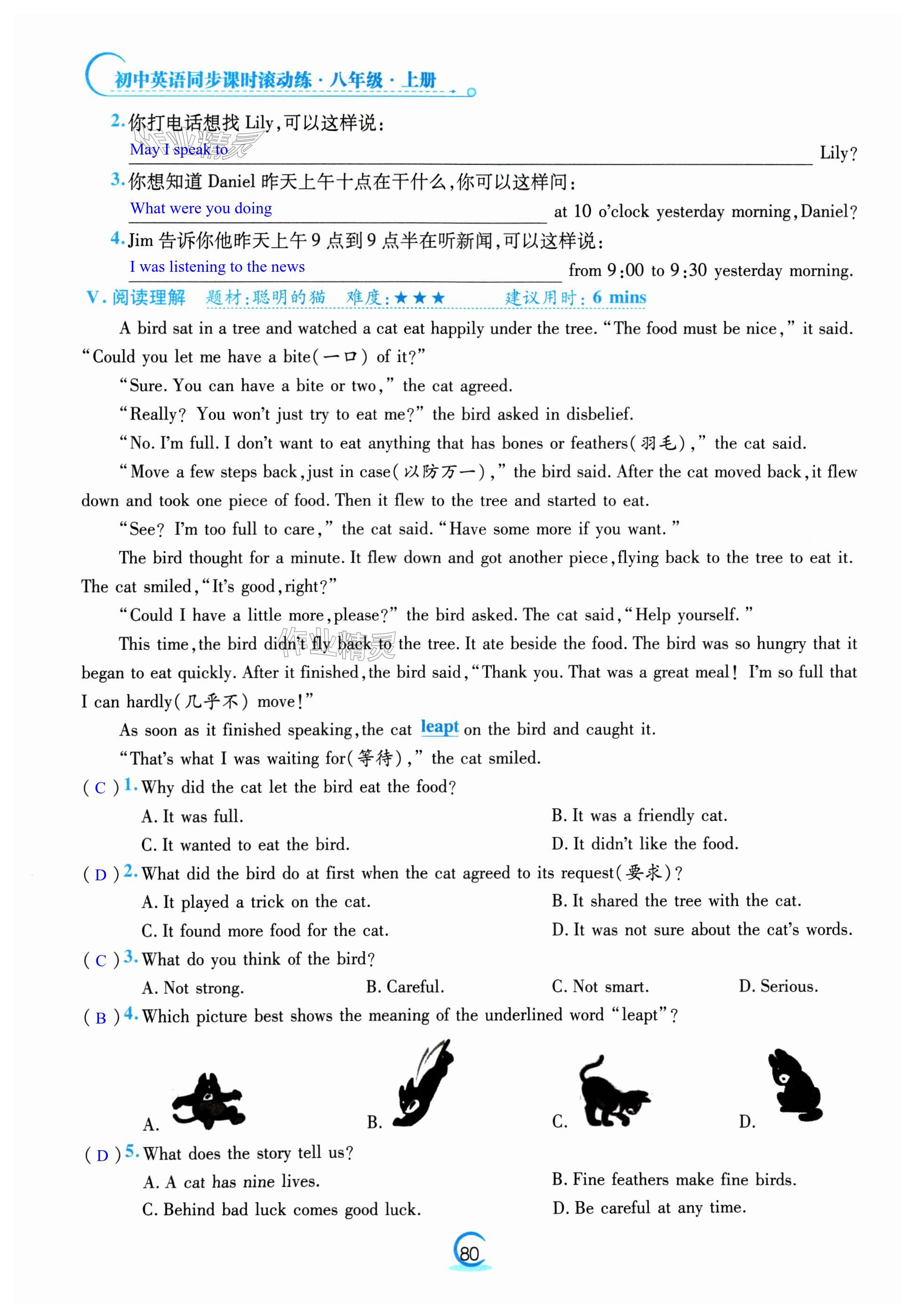 注:目前有些书本章节名称可能整理的还不是很完善,但都是按照顺序排列的,请同学们按照顺序仔细查找。练习册 2024年激情英语初中同步课时滚动练八年级上册仁爱版 答案主要是用来给同学们做完题方便对答案用的,请勿直接抄袭。