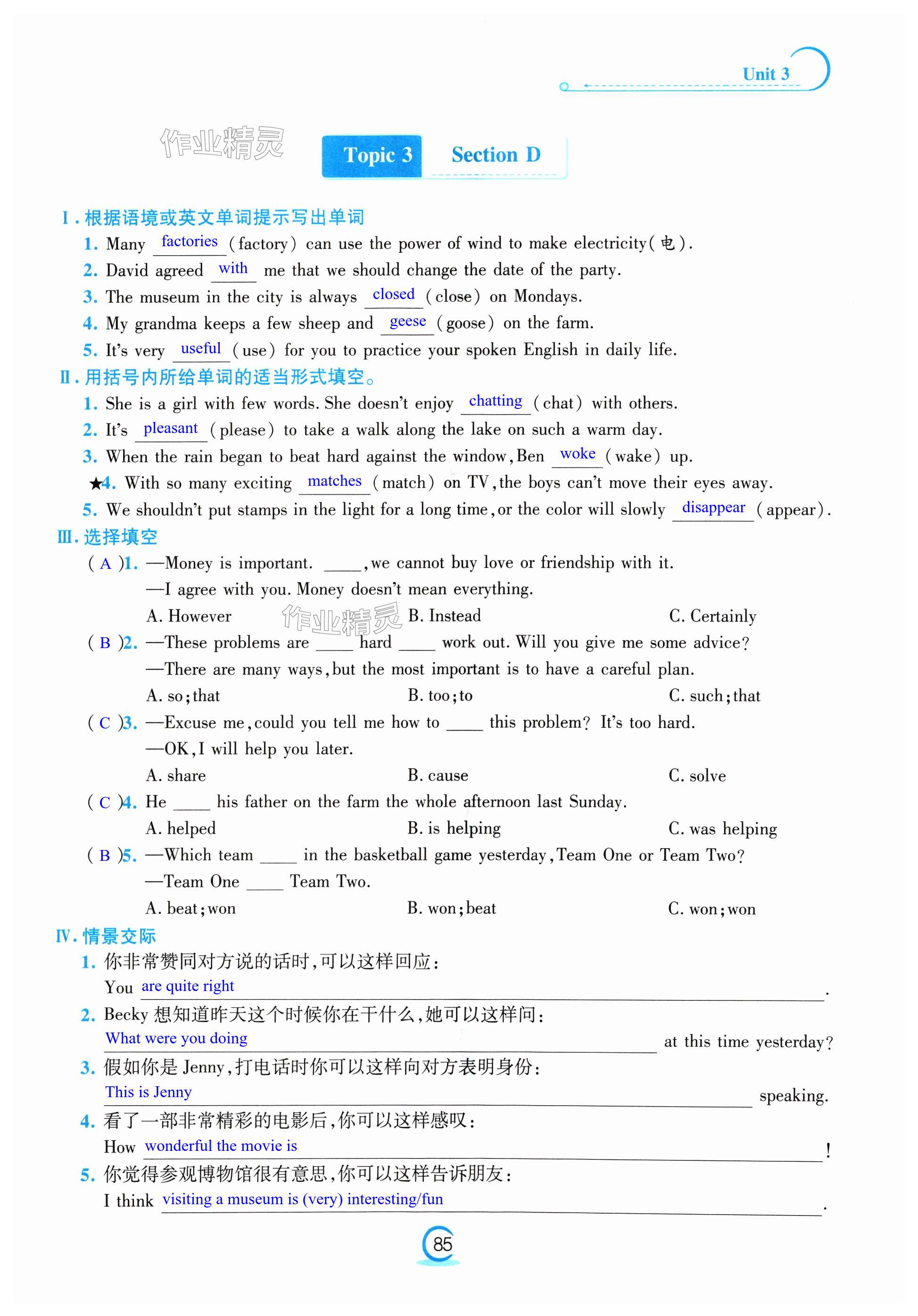 注:目前有些书本章节名称可能整理的还不是很完善,但都是按照顺序排列的,请同学们按照顺序仔细查找。练习册 2024年激情英语初中同步课时滚动练八年级上册仁爱版 答案主要是用来给同学们做完题方便对答案用的,请勿直接抄袭。