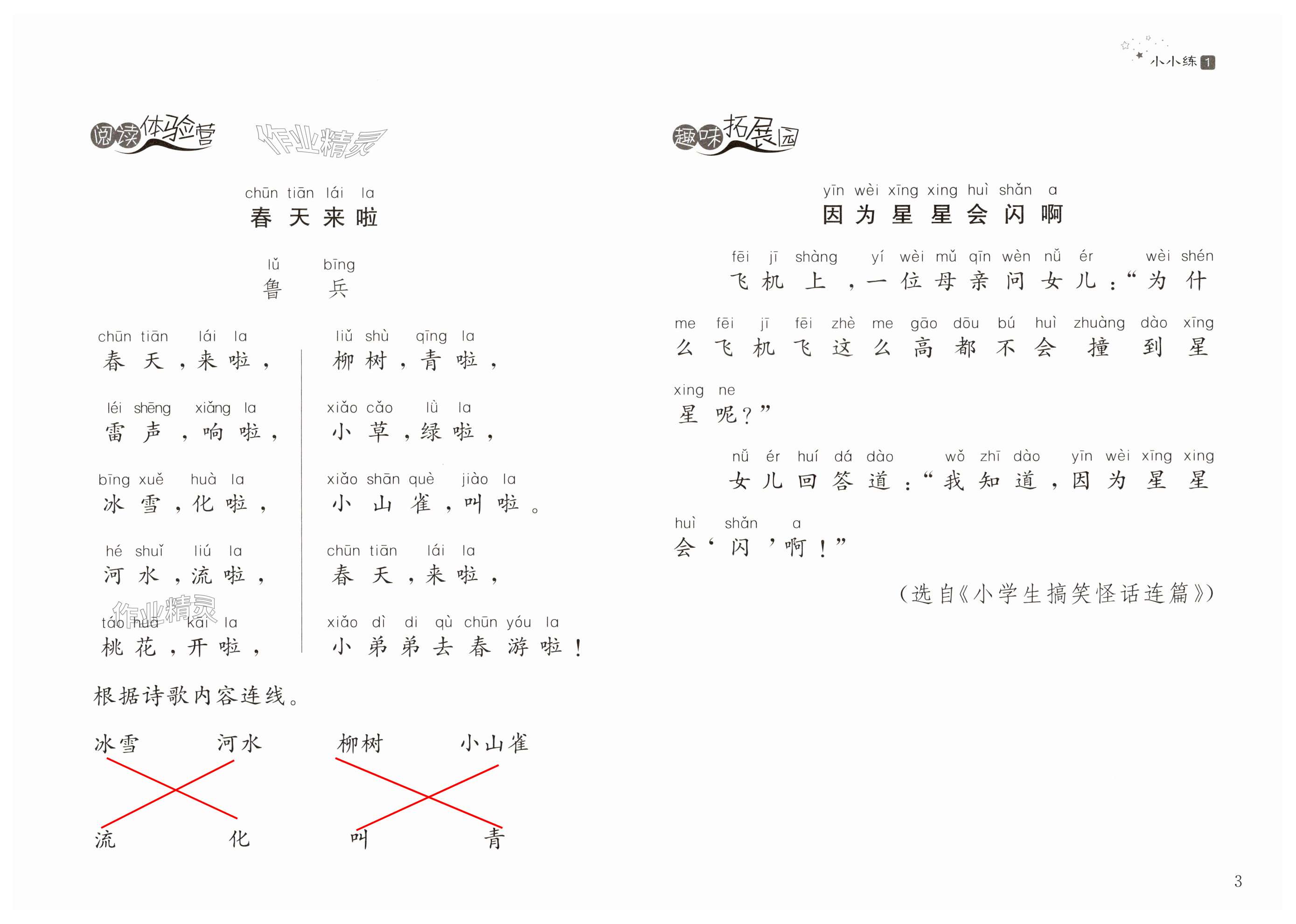 注:目前有些书本章节名称可能整理的还不是很完善,但都是按照顺序排列的,请同学们按照顺序仔细查找。练习册 2024年欢乐岛暑假小小练一年级合订本 答案主要是用来给同学们做完题方便对答案用的,请勿直接抄袭。