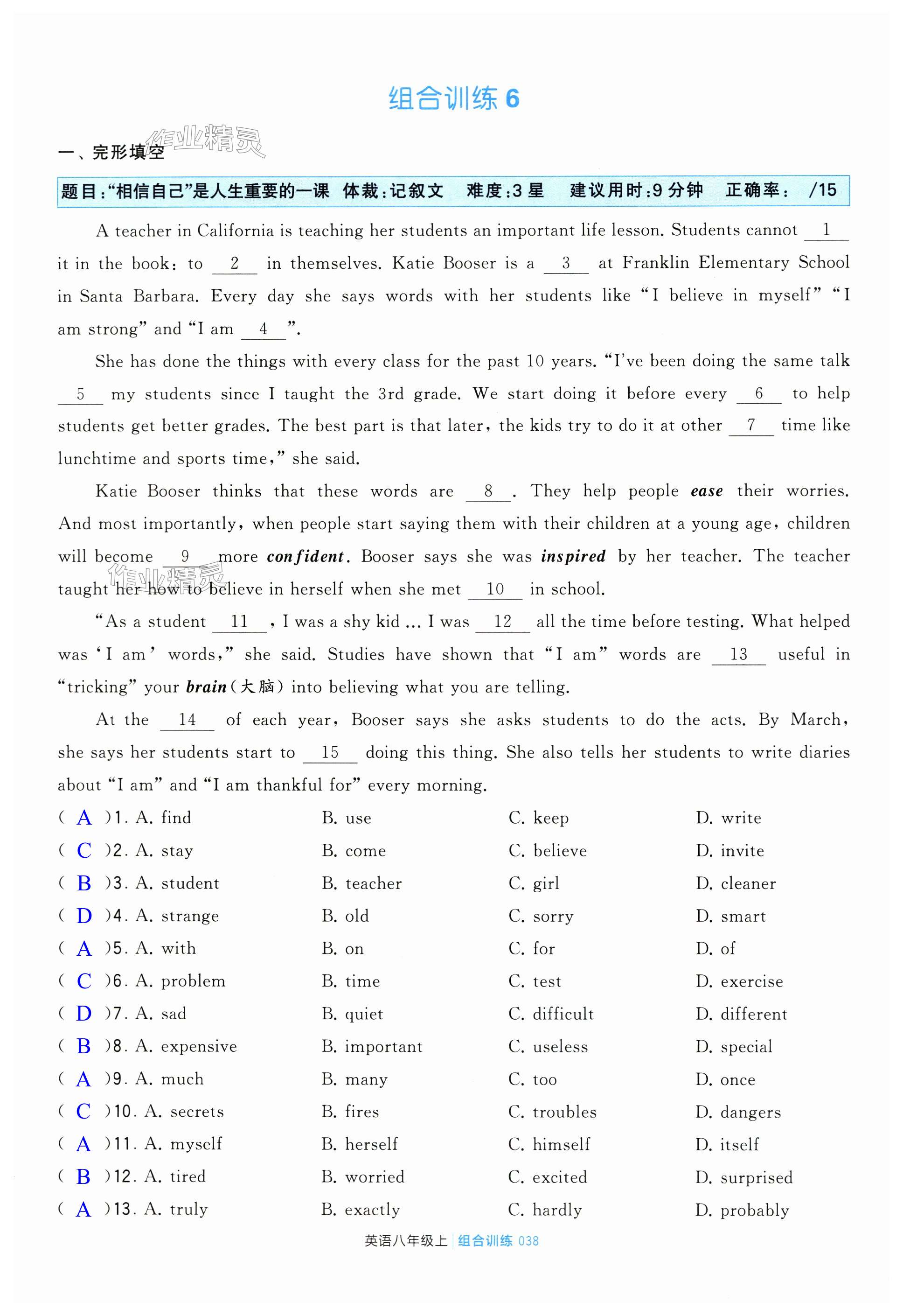 注:目前有些书本章节名称可能整理的还不是很完善,但都是按照顺序排列的,请同学们按照顺序仔细查找。练习册 2024年学霸组合训练八年级英语上册译林版 答案主要是用来给同学们做完题方便对答案用的,请勿直接抄袭。