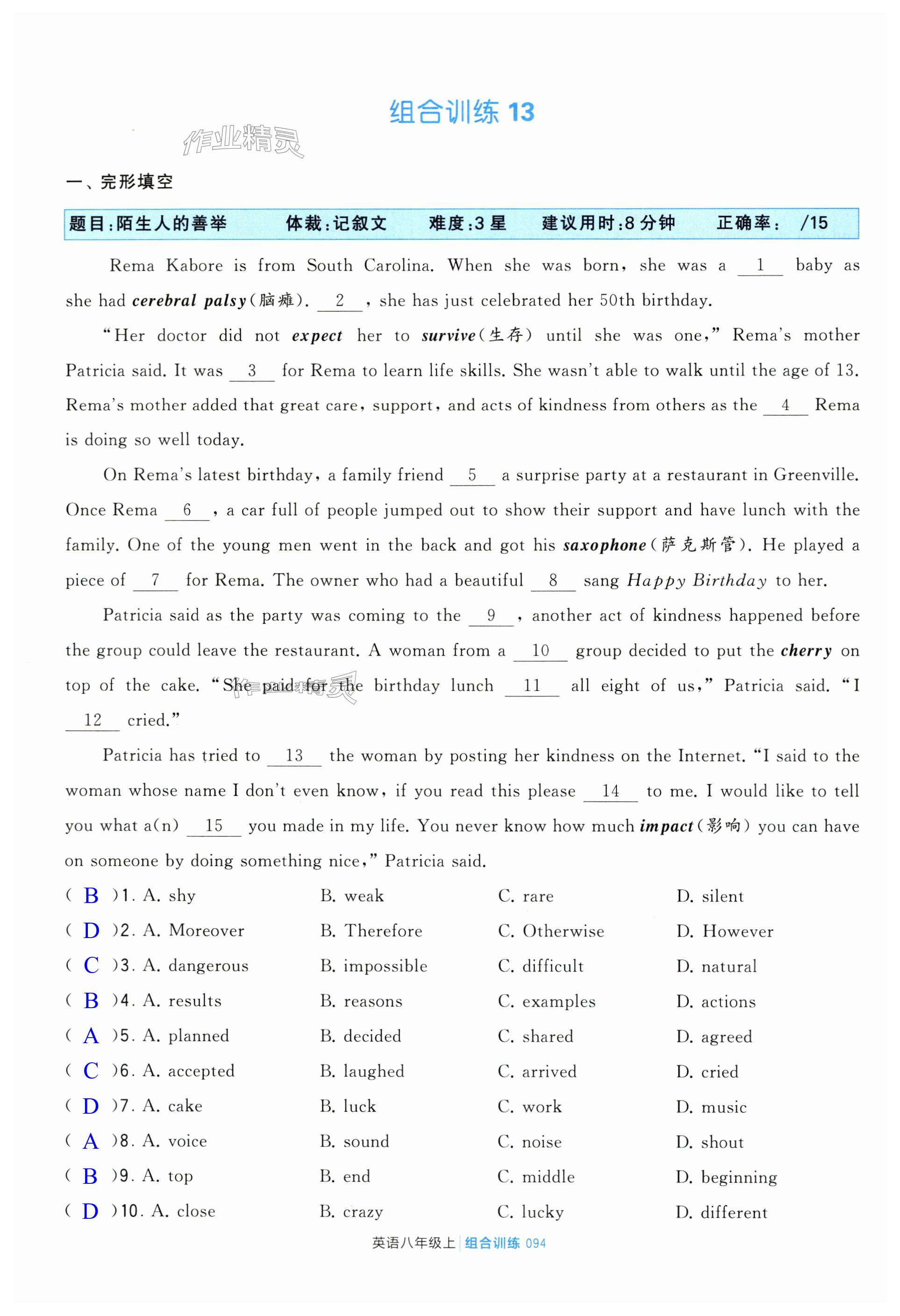 注:目前有些书本章节名称可能整理的还不是很完善,但都是按照顺序排列的,请同学们按照顺序仔细查找。练习册 2024年学霸组合训练八年级英语上册译林版 答案主要是用来给同学们做完题方便对答案用的,请勿直接抄袭。