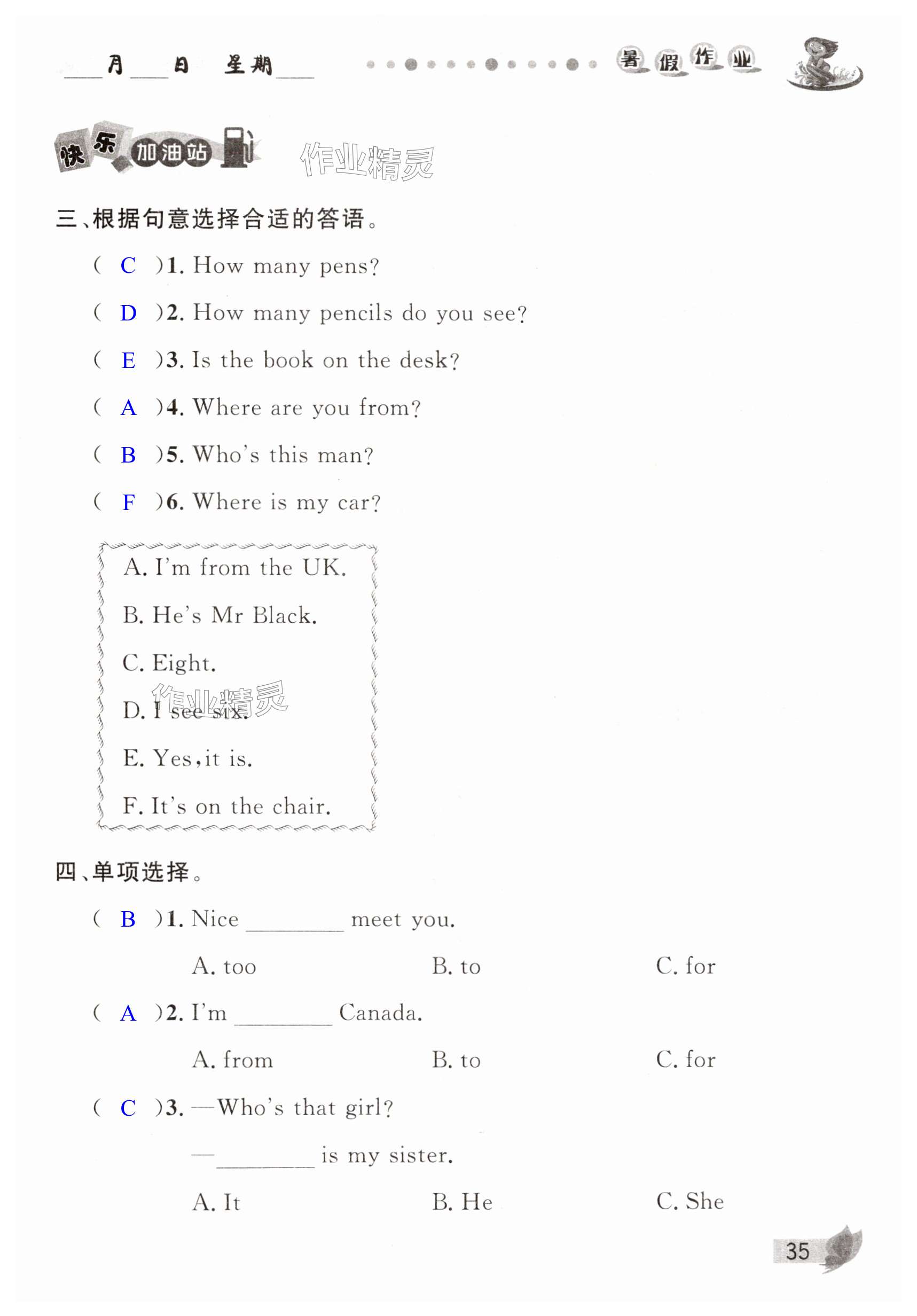 注:目前有些书本章节名称可能整理的还不是很完善,但都是按照顺序排列的,请同学们按照顺序仔细查找。练习册 2024年暑假作业甘肃少年儿童出版社三年级英语人教版 答案主要是用来给同学们做完题方便对答案用的,请勿直接抄袭。