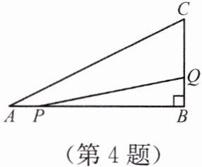 4. 如图,在 $\triangle ABC$ 中,$\angle B= 90^\circ$,$AB= 6\ cm$,$BC= 3\ cm$,点 $P$ 以 $1\ cm/s$ 的速度从点 $A$ 开始沿边 $AB$ 向点 $B$ 移动,点 $Q$ 以 $2\ cm/s$ 的速度从点 $B$ 开始沿边 $BC$ 向点 $C$ 移动. 如果点 $P$、$Q$ 分别从点 $A$、$B$ 同时出发,多少时间后,点 $P$、$Q$ 之间的距离等于 $4\sqrt{2}\ cm$?