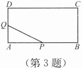 3. 如图,在矩形 $ABCD$ 中,$AB= 24\ cm$,$BC= 12\ cm$,点 $P$ 以 $2\ cm/s$ 的速度从点 $A$ 开始沿边 $AB$ 向点 $B$ 移动,点 $Q$ 以 $1\ cm/s$ 的速度从点 $D$ 开始沿边 $DA$ 向点 $A$ 移动. 如果点 $P$、$Q$ 同时出发,用 $t(s)$ 表示移动的时间 ($0 \leq t \leq 12$),那么当 $t$ 为何值时,$\triangle QAP$ 的面积等于 $32\ cm^2$?