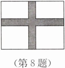 8. 如图,在长100 m、宽80 m的矩形场地上修建两条宽度相等且互相垂直的道路,剩余部分进行绿化,要使绿化面积为7644 m^2.设道路的宽为$x$ m,可列方程为( ).
