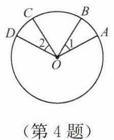4. 如图,在$\odot O$中,$\widehat{AC}= \widehat{BD}$,$\angle 1= 30^\circ$,则$\angle 2= $______.